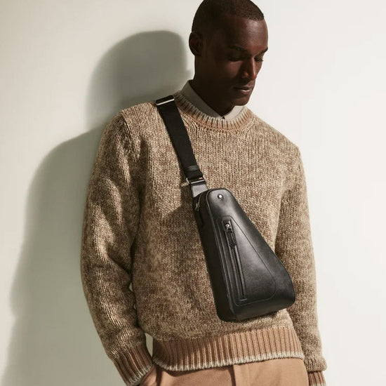 The elegant Montblanc Soft Shoulder Bag in black features unparalleled craftsmanship and an innovative design. Exterior pockets offer convenient accessibility, while details such as stitching and sliders evoke the shape of a nib, a symbol of Montblanc's heritage and excellence.