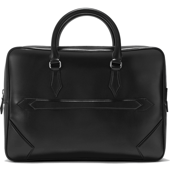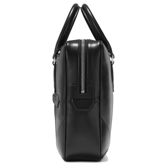 Ispirato all’arte della scrittura, il portadocumenti Meisterstück è un compagno elegante per i viaggi di lavoro. Realizzato in una nuova tipologia di pelle nera estremamente lucida, presenta impunture, cursori delle cerniere e manici che richiamano la forma di un pennino, la vera essenza di Montblanc. Una versione più grande del logo impreziosisce la borsa. I manici superiori in pelle, la tracolla in pelle amovibile e il sistema satellite offrono diverse opzioni di portabilità, mentre le tasche interne e la tasca posteriore esterna assicurano praticità.