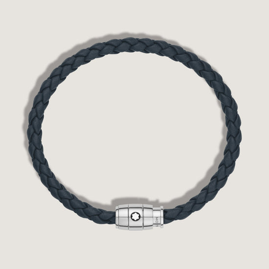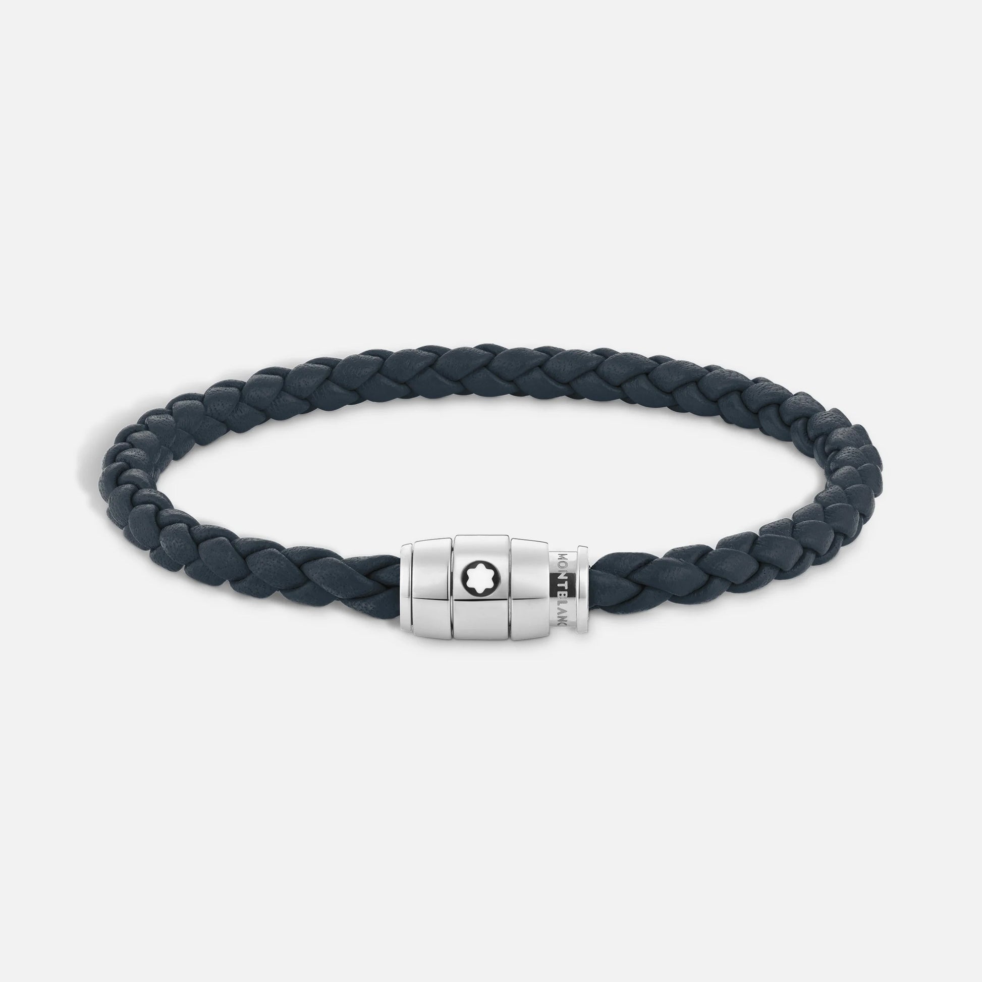 Montblanc Meisterstück 3-ring steel and leather bracelet, Air Force Blue, size L 13601468