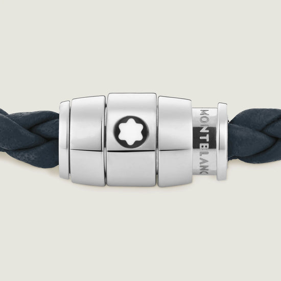 Montblanc bracciale in acciaio a 3 anelli e pelle Meisterstück Blu avio misura M 13601363