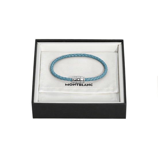 Montblanc bracciale in acciaio a 3 anelli e pelle Meisterstück Blu Fumè misura L 13429368