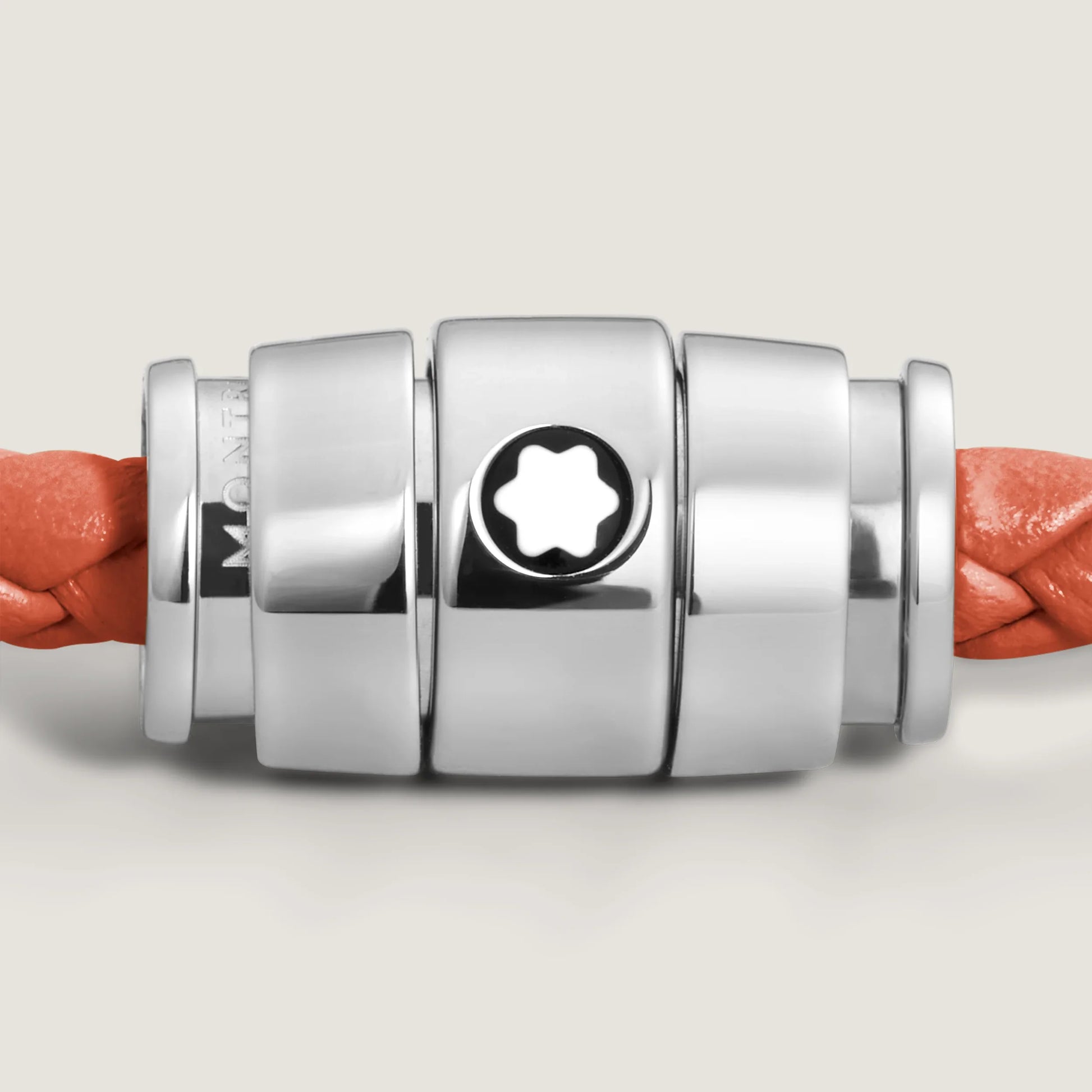 Montblanc bracciale in acciaio a 3 anelli e pelle Meisterstück Cayenne misura L 13429168