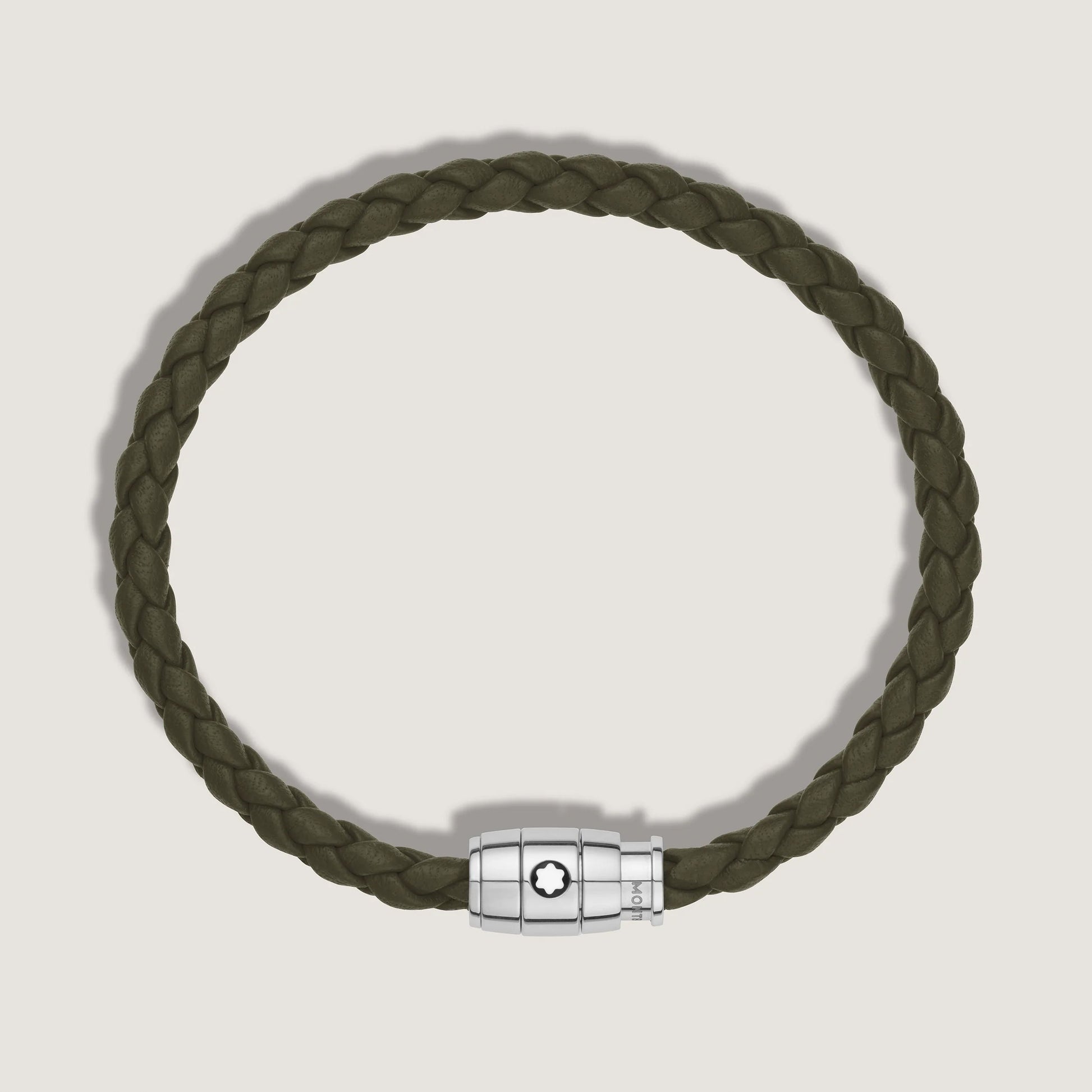 Montblanc bracciale in acciaio a 3 anelli e pelle Meisterstück Kaki misura M 13600463