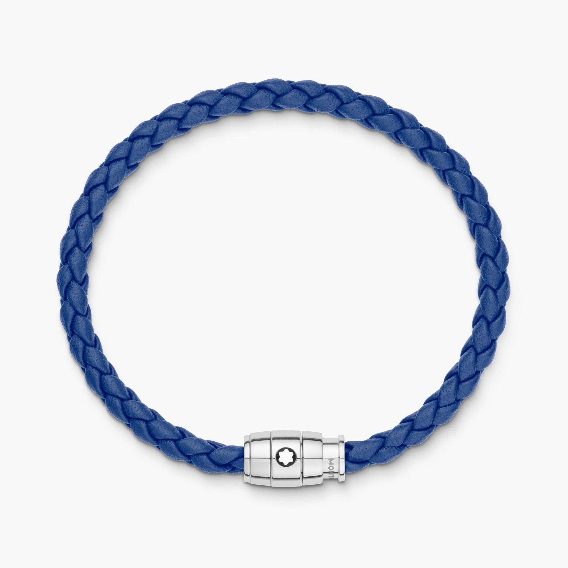 Montblanc bracciale in acciaio con chiusura a 3 anelli e pelle blu misura L 130900 68
