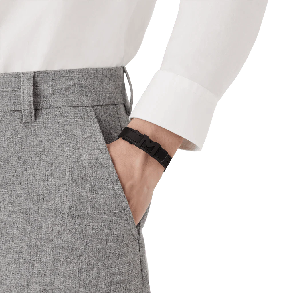 Montblanc bracciale uomo in pelle Montblanc M logo nero 129503