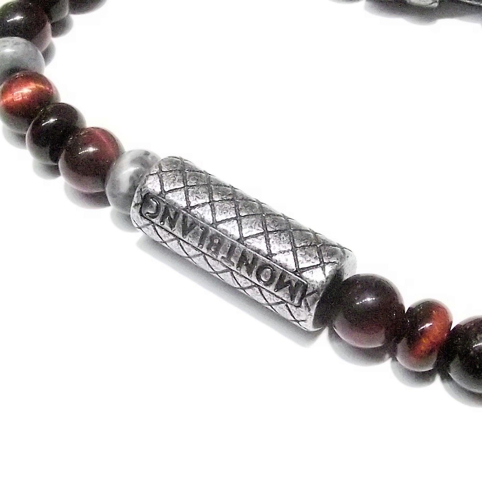 Montblanc bracciale Wrap Me con sfere in occhio di tigre argento 925 misura L 12616368