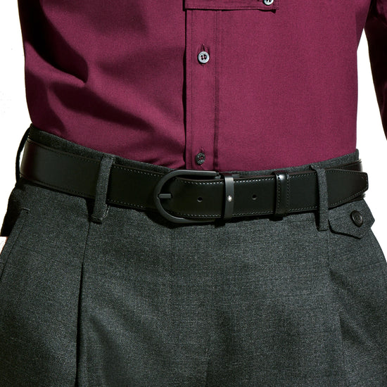 Montblanc cintura 35 mm pelle nera con fibbia a ferro di cavallo 199650
