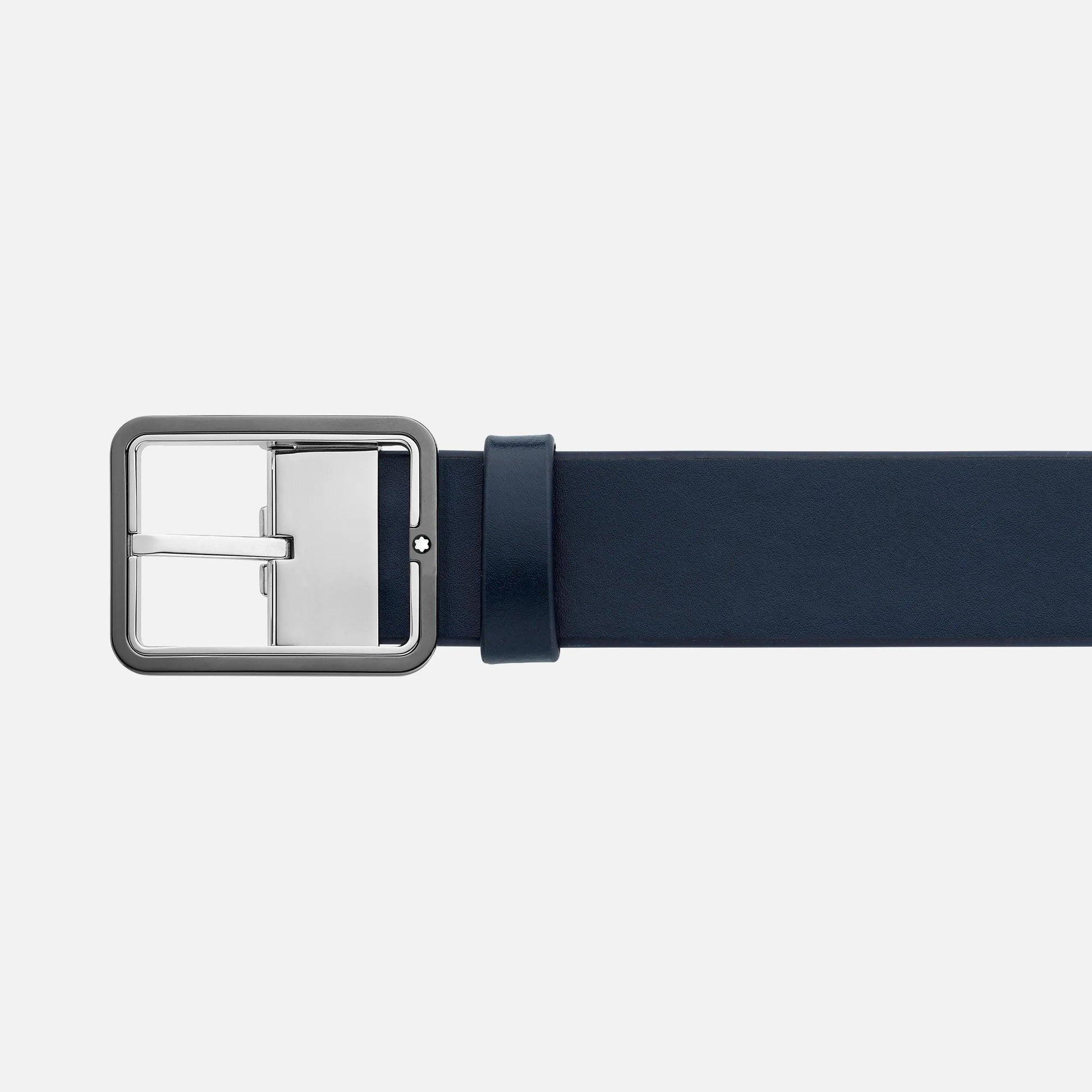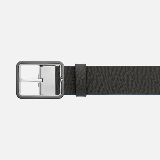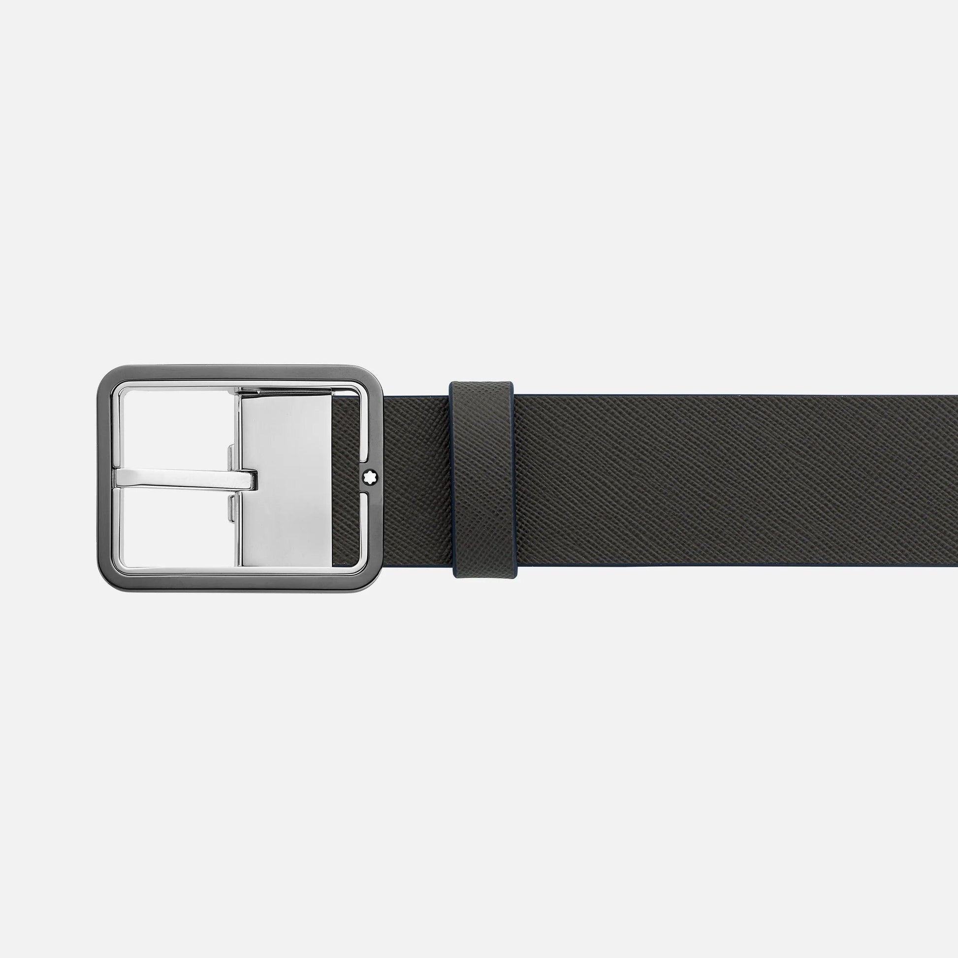 Montblanc 35mm belt with rectangular buckle in blue/grey leather reversible adjustable size 131193