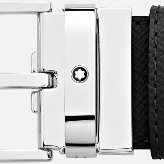 Montblanc cintura 35mm fibbia trapezoidale pelle Sartorial reversibile nero blu lunghezza regolabile 118438