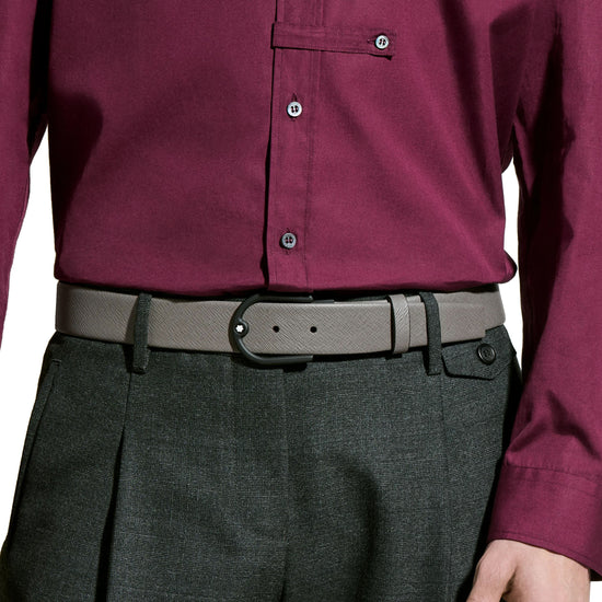 Montblanc cintura da 35 mm in pelle grigia medio con fibbia a ferro di cavallo 199633