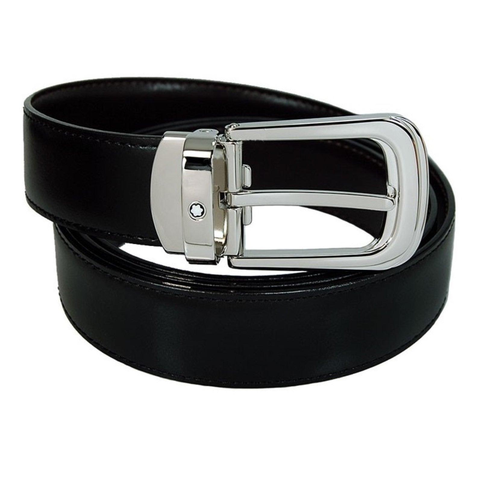 Montblanc cintura regolabile uomo reversibile nero marrone fibbia ferro di cavallo 106603