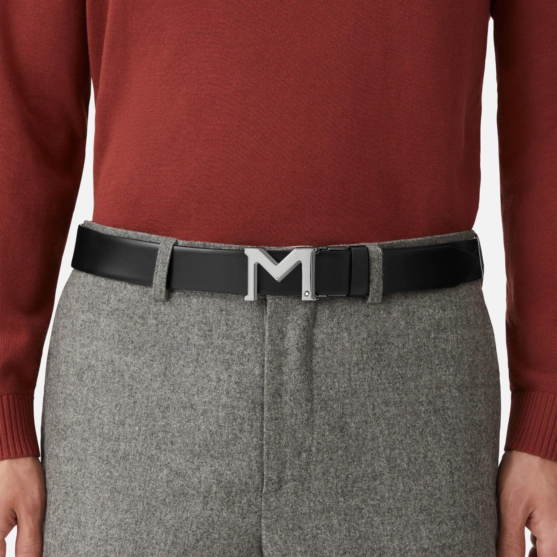 Make a statement with this belt featuring an oversized "M" buckle, complete with our iconic emblem. The self-adjusting strap features a different color on each side, offering multiple styling options.