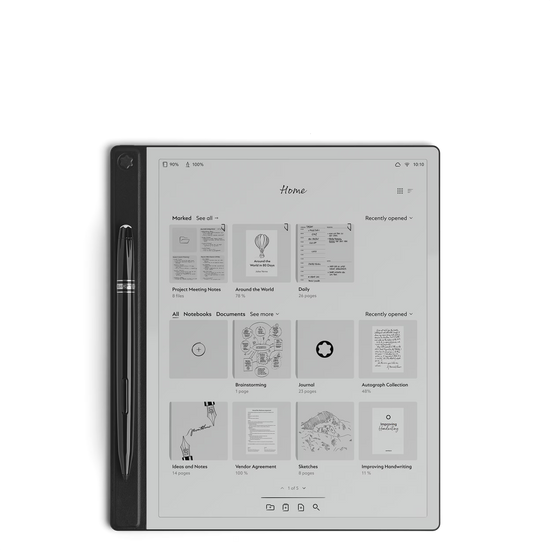 Montblanc Digital Paper Black 135010 combines traditional craftsmanship with digital innovation, offering a crisp and natural handwriting experience on digital media. Ideal for those seeking a versatile space for writing, drawing, and annotating with precision, thanks to three interchangeable nibs that deliver personalized, defined lines. This refined instrument allows you to start from a blank page, edit documents, or share notes with ease, making it the ideal companion for those who write with the intention of leaving a lasting impression.