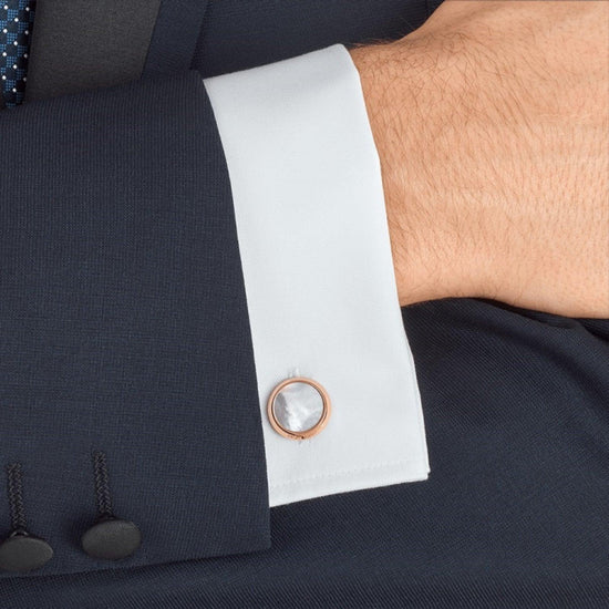 I gemelli Meisterstück celebrano uno stile atemporale. Ispirati allo strumento da scrittura Meisterstück Montblanc, la loro intramontabile forma rotonda di acciaio pregiato con finitura PVD color oro rosso e inserto in madreperla crea un gioiello dallo stile inconfondibile Montblanc.