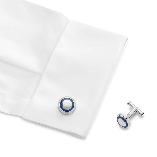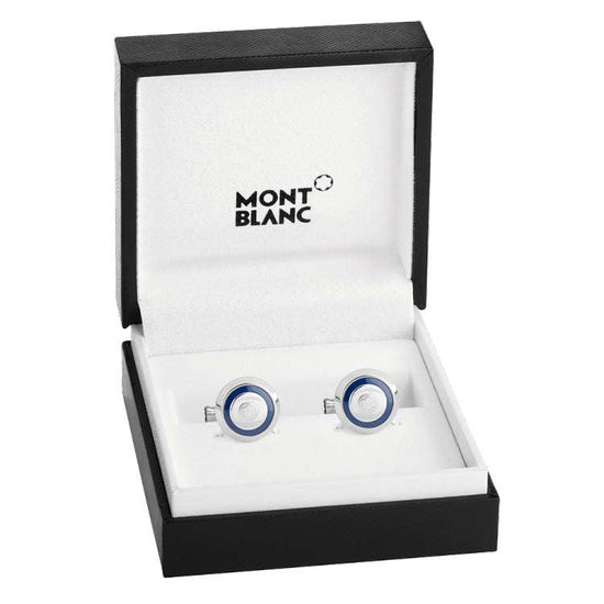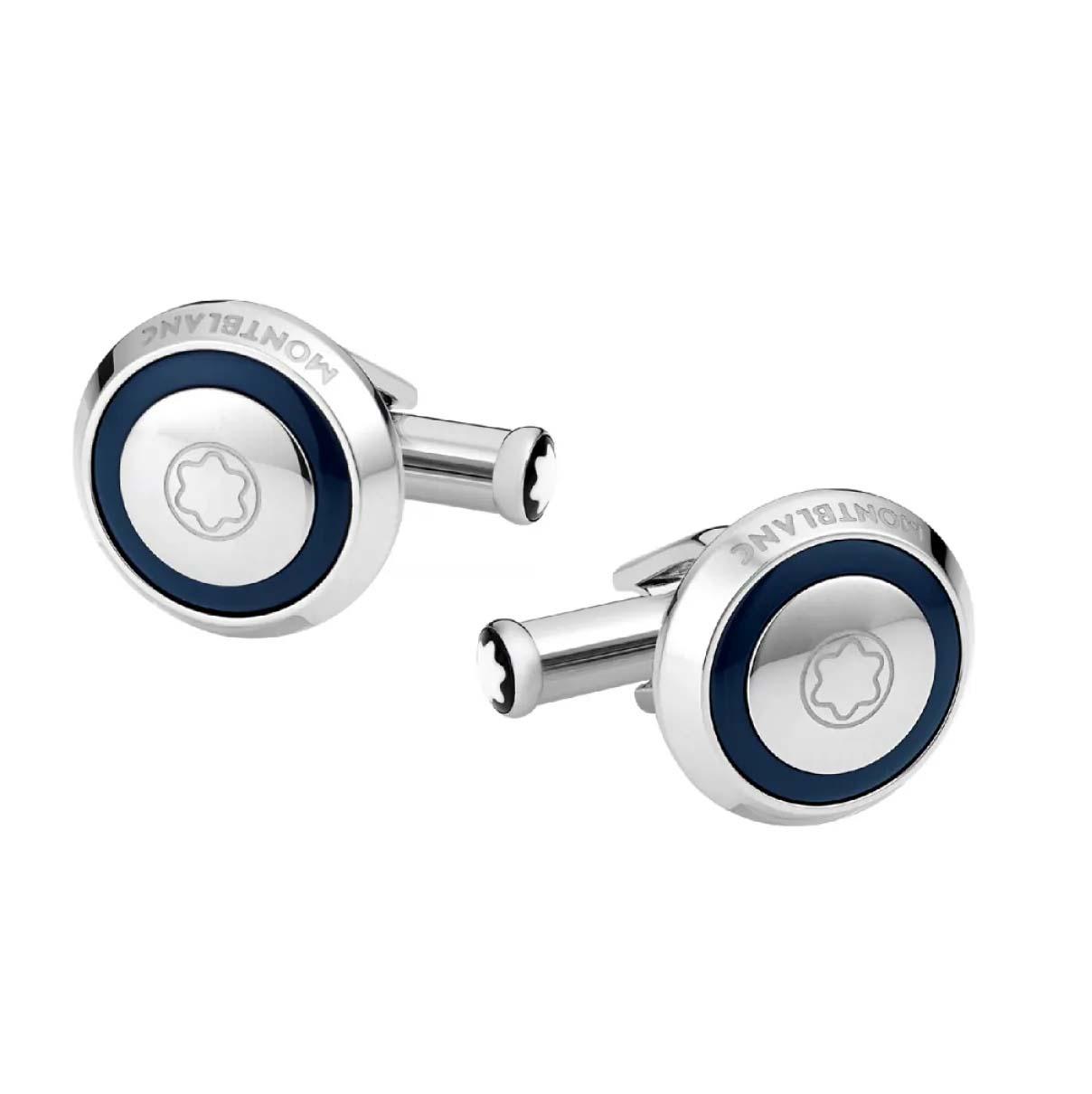 Montblanc UNICEF Round Cufflinks in Steel and Blue Resin 116576