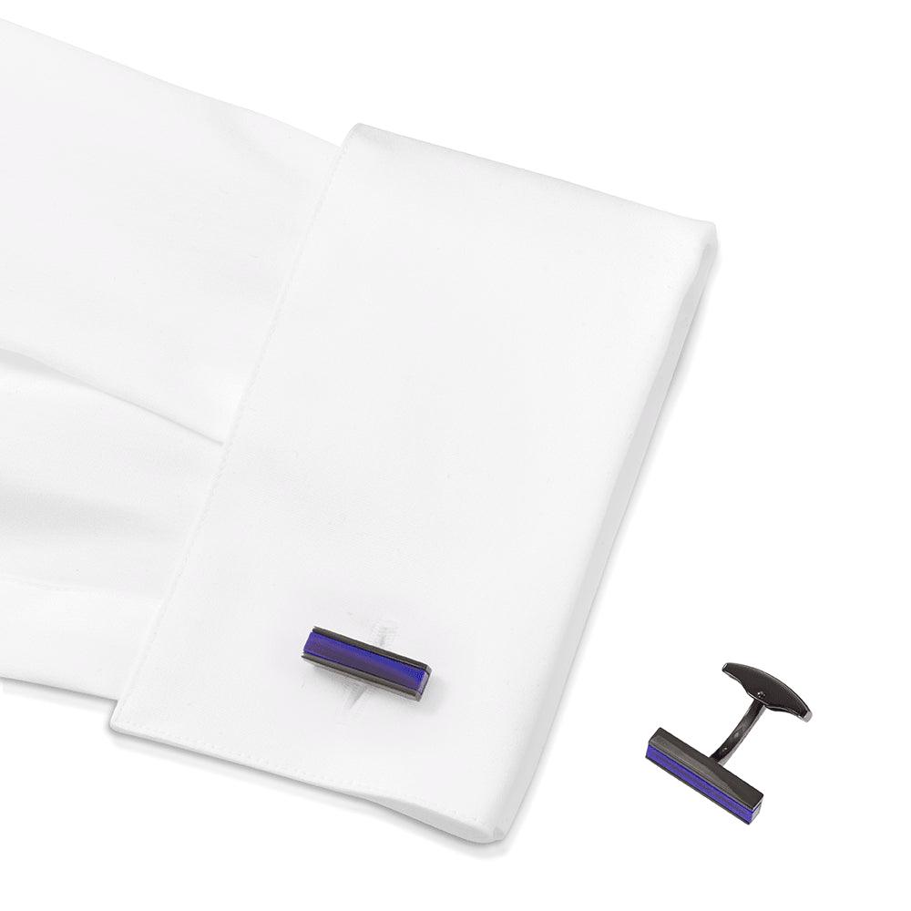 The Urban Speed cufflinks celebrate a simple and elegant style. The premium steel with a black PVD finish and blue glass insert create a piece of jewelry that offers endless possibilities to highlight the wearer's style and personality.