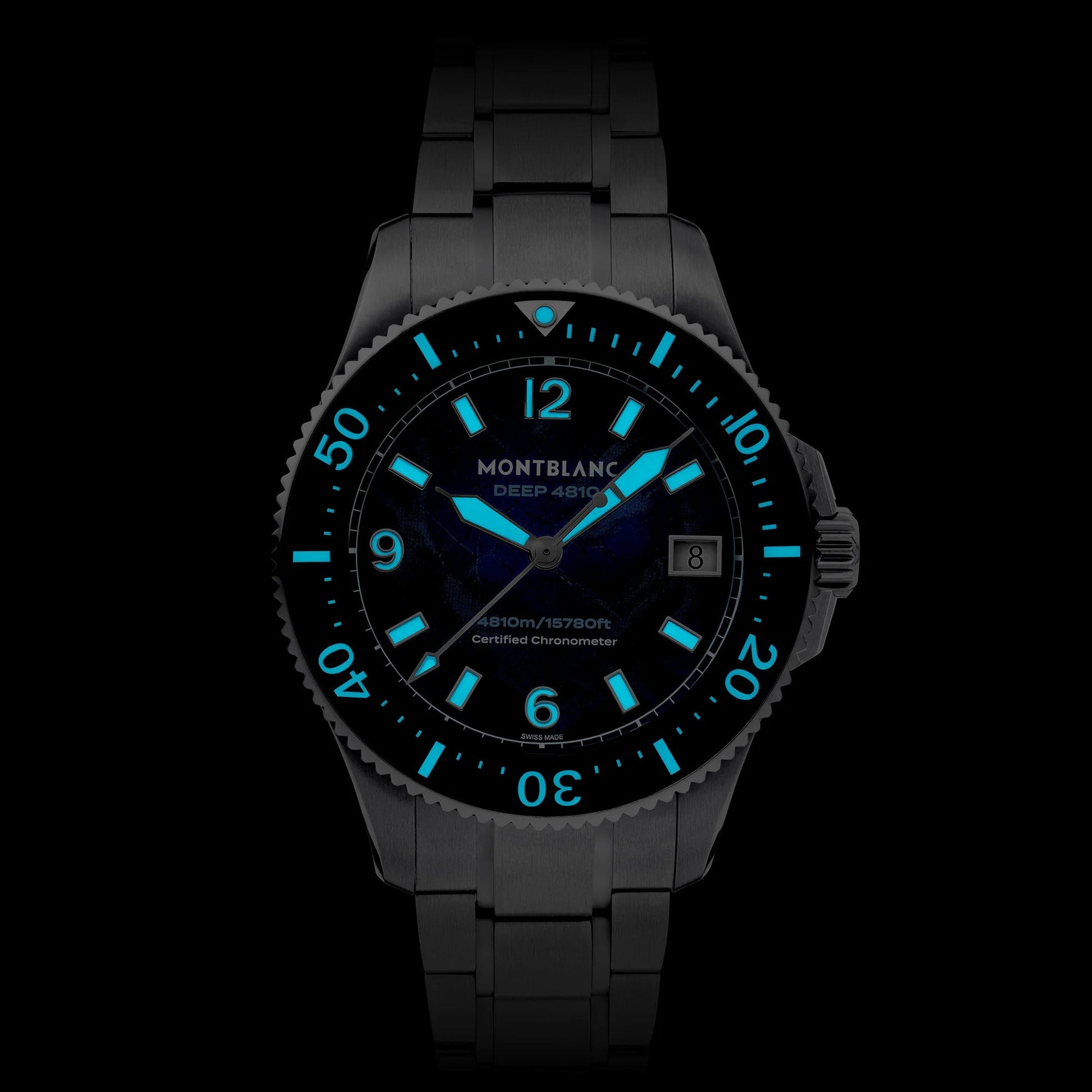 Dopo aver raggiunto le vette più alte, Montblanc esplora le profondità marine fino a 4810 metri con Montblanc Iced Sea 0 Oxygen Deep 4810. Il quadrante verde motivo “ghiacciaio” è ispirato al Mer de Glace (“mare di ghiaccio”), il ghiacciaio principale del massiccio del Monte Bianco. La sua texture è stata ottenuta utilizzando una tecnica ancestrale quasi dimenticata chiamata gratté-boisé. Con cassa in titanio da 43 mm completamente priva di ossigeno con scudo protettivo della corona a vite, questo orologio da immersione presenta un fondello decorato con incisione 3D della visuale dei subacquei sotto i ghiacci. Il segnatempo è animato dal movimento automatico MB 29.29 di Manifattura con certificazione COSC e riserva di carica di circa 5 giorni, conforme alla normativa ISO 6425 per le immersioni subacquee. È impermeabile fino a 4810 metri.