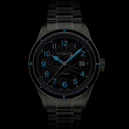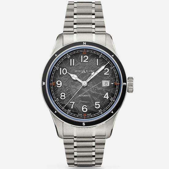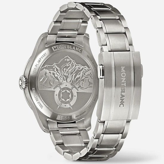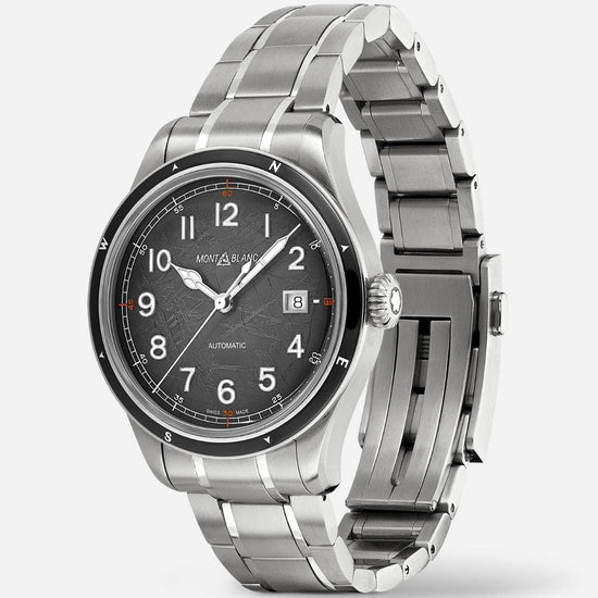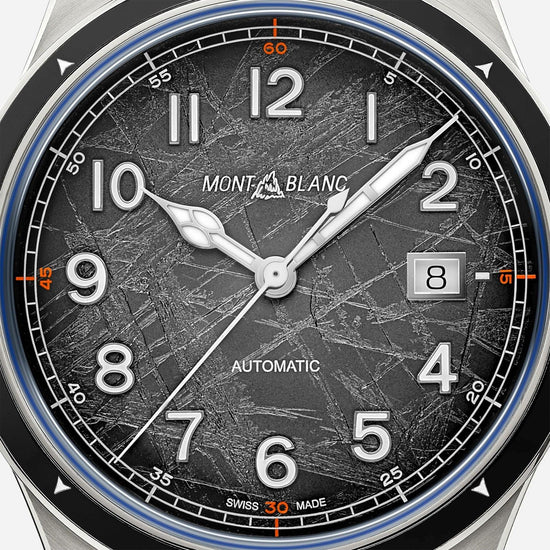 Paying homage to the world's highest peaks and the mountaineers who dare to scale them despite extreme conditions, the Montblanc 1858 Automatic Date 0 Oxygen The 8000 is housed in a 41 mm stainless steel case that is completely oxygen-free. This innovation offers explorers numerous advantages, eliminating fogging and preventing oxidation, allowing the movement's components to last longer with even greater precision. Powered by the automatic caliber MB 24.17, the timepiece features a black ceramic bezel with luminescent cardinal points, a dark grey Sfumato dial with a glacier pattern and orange accents, blue luminescence, and a case back engraved with the "Spirit of Mountain Exploration" motif. Like the other models in this capsule collection, the Montblanc 1858 Automatic Date 0 Oxygen The 8000 is presented on an interchangeable stainless steel bracelet with a tapered design and refined adjustments.
