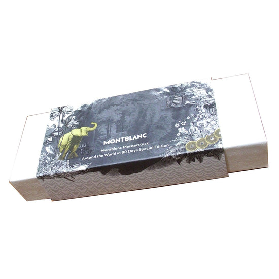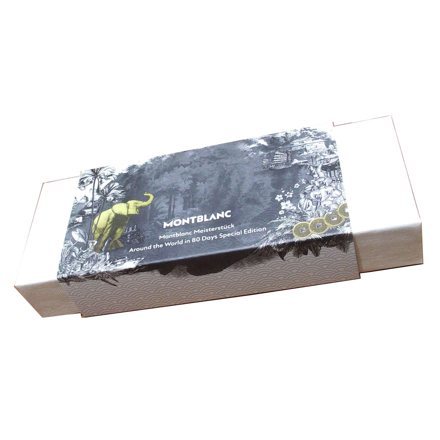 La collezione Meisterstück Around the World in 80 Days si ispira al famoso romanzo di avventura di Jules Verne “Il giro del mondo in 80 giorni”. La penna a sfera Classique in pregiata resina antracite trae ispirazione dalla seconda tappa del viaggio, da Bombay a Yokohama. In questa seconda tappa avventurosa, i protagonisti viaggiano su un maestoso elefante, che compare in un cartiglio sul cappuccio. La clip sfoggia un asso di quadri laccato rosso, che rappresenta la scommessa di Fogg di compiere il viaggio in 80 giorni. La parte superiore del cappuccio presenta la goffratura della durata del viaggio, 25 giorni da Bombay a Yokohama e 80 giorni in totale.