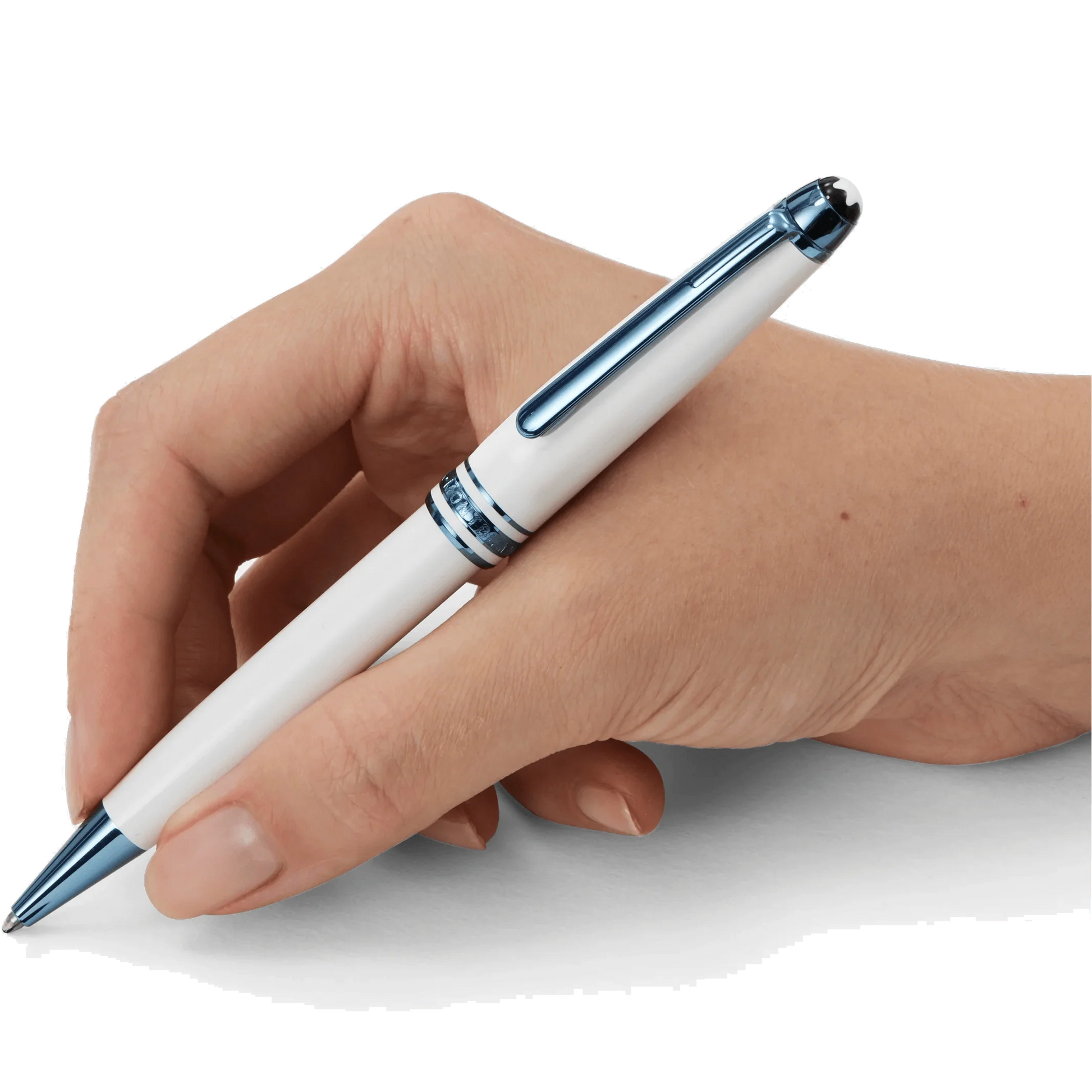 Montblanc penna a sfera Meisterstück Glacier Classique bianca finiture PVD blu 129401
