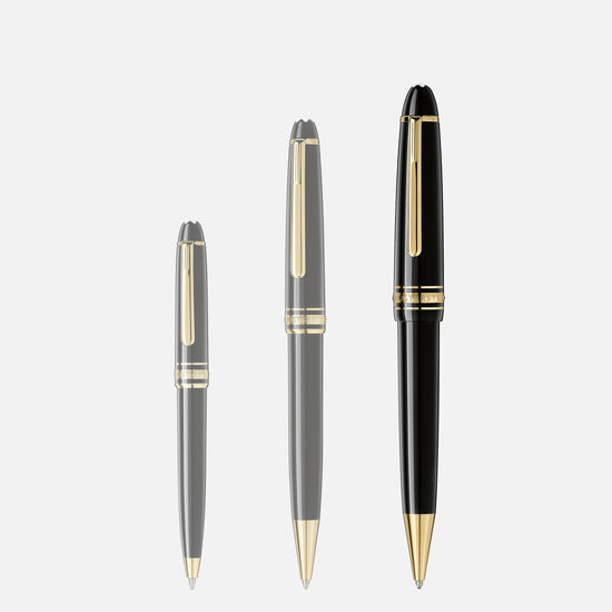 Gli strumenti da scrittura Meisterstück LeGrand in pregiata resina nera con dettagli finitura oro, sormontati dall'emblema a forma di stella bianca, rappresentano un'icona di design Montblanc.