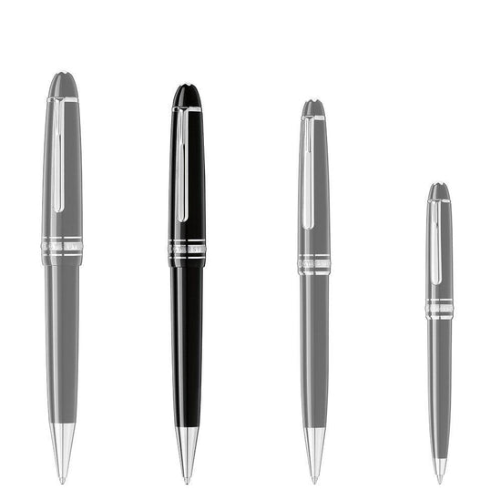 The Meisterstück Midsize in black precious resin with elegant platinum-coated details, surmounted by the white Montblanc emblem, is a unique design icon. Its size is midway between the LeGrand and Classique writing instruments.