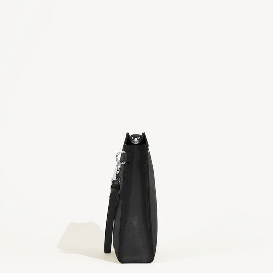 Porta con te i tuoi oggetti essenziali con questa pochette Sartorial di Montblanc. Realizzata in pelle nera stampa Saffiano, oltre allo scomparto principale offre una tasca supplementare per massima praticità. Il cinturino amovibile consente di portarla a mano, sotto il braccio o al polso. Stile elegante e funzionalità in un unico accessorio.