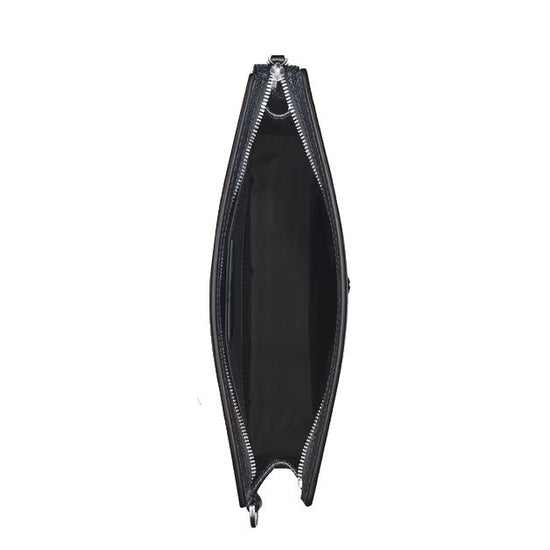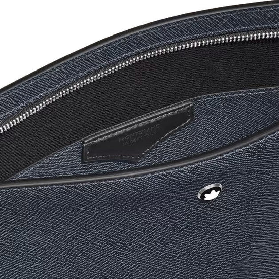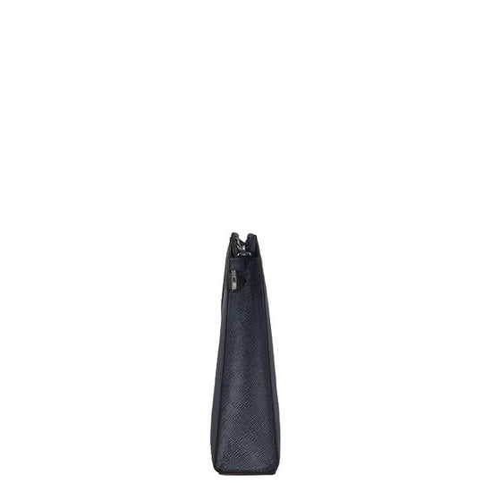 Carry your everyday essentials in style with this sophisticated clutch. Crafted from embossed Sartorial leather in a refined two-tone combination of classic blue and black, it features a spacious main compartment with a handy additional open pocket. Versatile and elegant, it can be carried by hand, under the arm, or on the wrist thanks to the removable handle.
