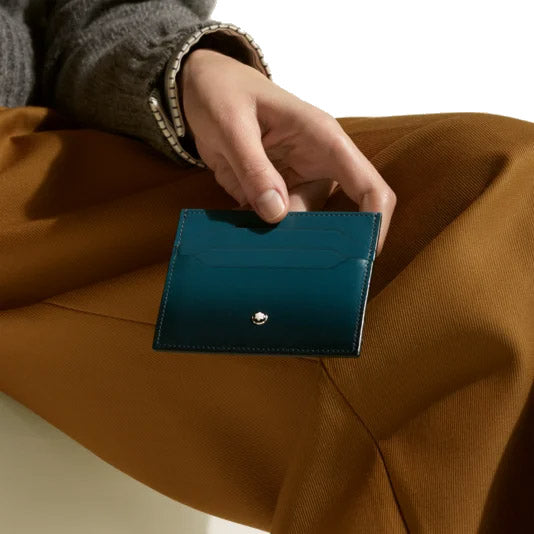The Montblanc Meisterstück Card Holder is elegant and practical, perfect for carrying on the go. Crafted from Cyprus blue leather with a hand-applied sfumato effect, it holds up to six credit cards and features an additional pocket for small essentials.