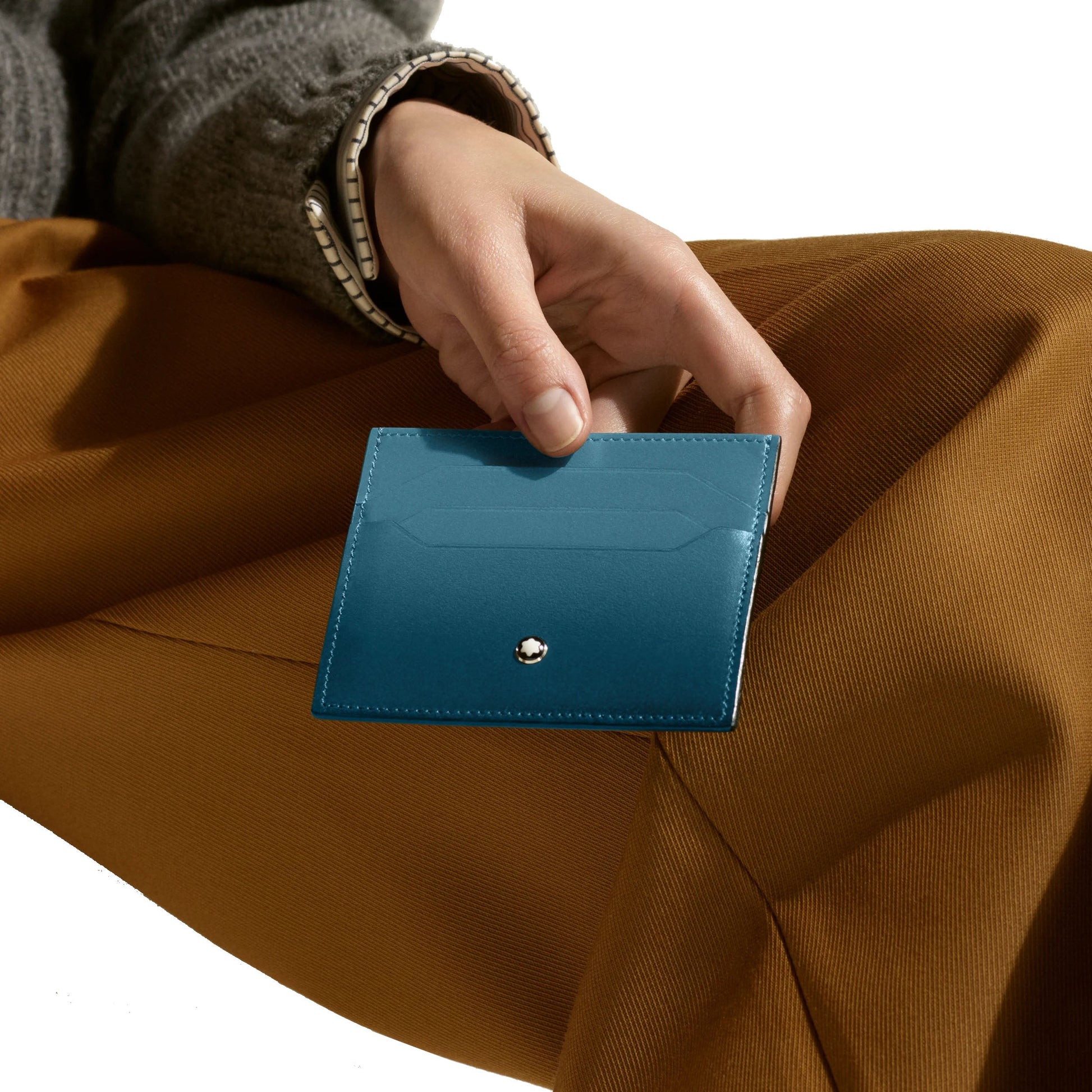 The ideal everyday companion, this Meisterstück card holder features a compact design that fits perfectly in almost any pocket. Crafted from smoky blue leather with a hand-applied ombre effect for an elegant look, it offers space for up to six credit cards, plus an additional pocket for small personal items.