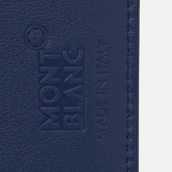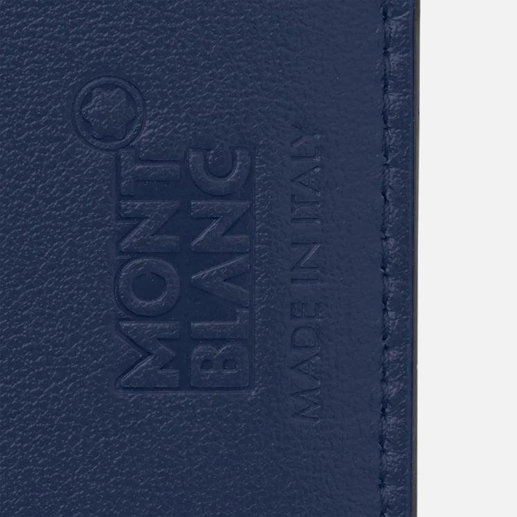 The Meisterstück wallet with eight credit card slots is crafted from a new, high-gloss leather in Ink Blue. The new, linear geometric design emphasizes its functional essence, with multiple card slots, receipt pockets, and a zippered coin pocket. Its compact size allows it to easily fit into most pockets.