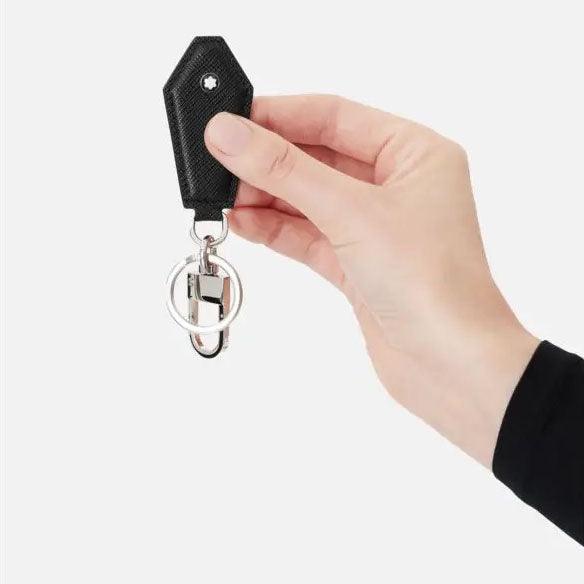 La Montblanc Sartorial Collection evoca un’eleganza moderna. Realizzato in pelle stampa Saffiano, questo portachiavi presenta un design elegante con un anello di metallo e un gancio.