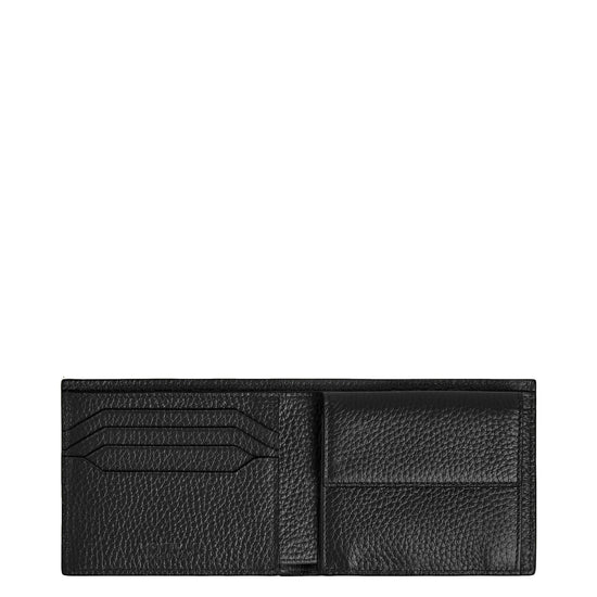 Questo portafoglio compatto in pelle coniuga eleganza discreta e praticità quotidiana. Dotato di una tasca con patta per le monete, offre inoltre quattro aperture per carte di credito, due scomparti per banconote, un portamonete e una tasca aggiuntiva per ricevute. Realizzato in morbida pelle di vitello premium nera, è impreziosito dall’iconico emblema Montblanc, per un accessorio raffinato e al contempo funzionale.