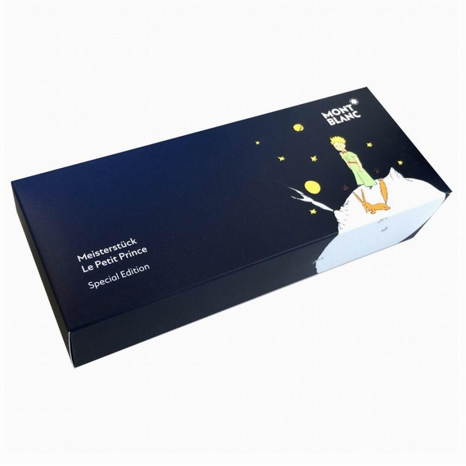 Il roller Meisterstück Le Petit Prince Classique in pregiata resina blu scuro trae ispirazione dalla profondità del cielo notturno. Il cappuccio, che reca l’incisione di un motivo a muso di volpe, rivela una frase tratta dal libro “Il piccolo principe” ed è coronato dall’emblema iconico. Il motivo con tre anelli finitura platino reca il logo Montblanc sull’anello centrale e la clip è abbellita da una stella gialla laccata.