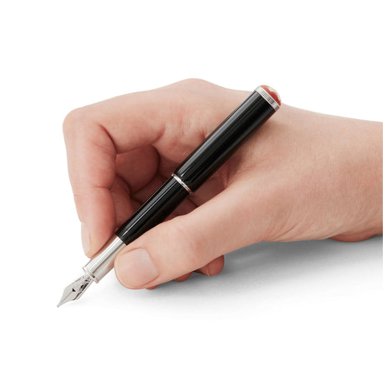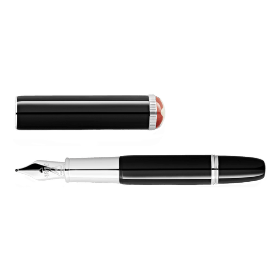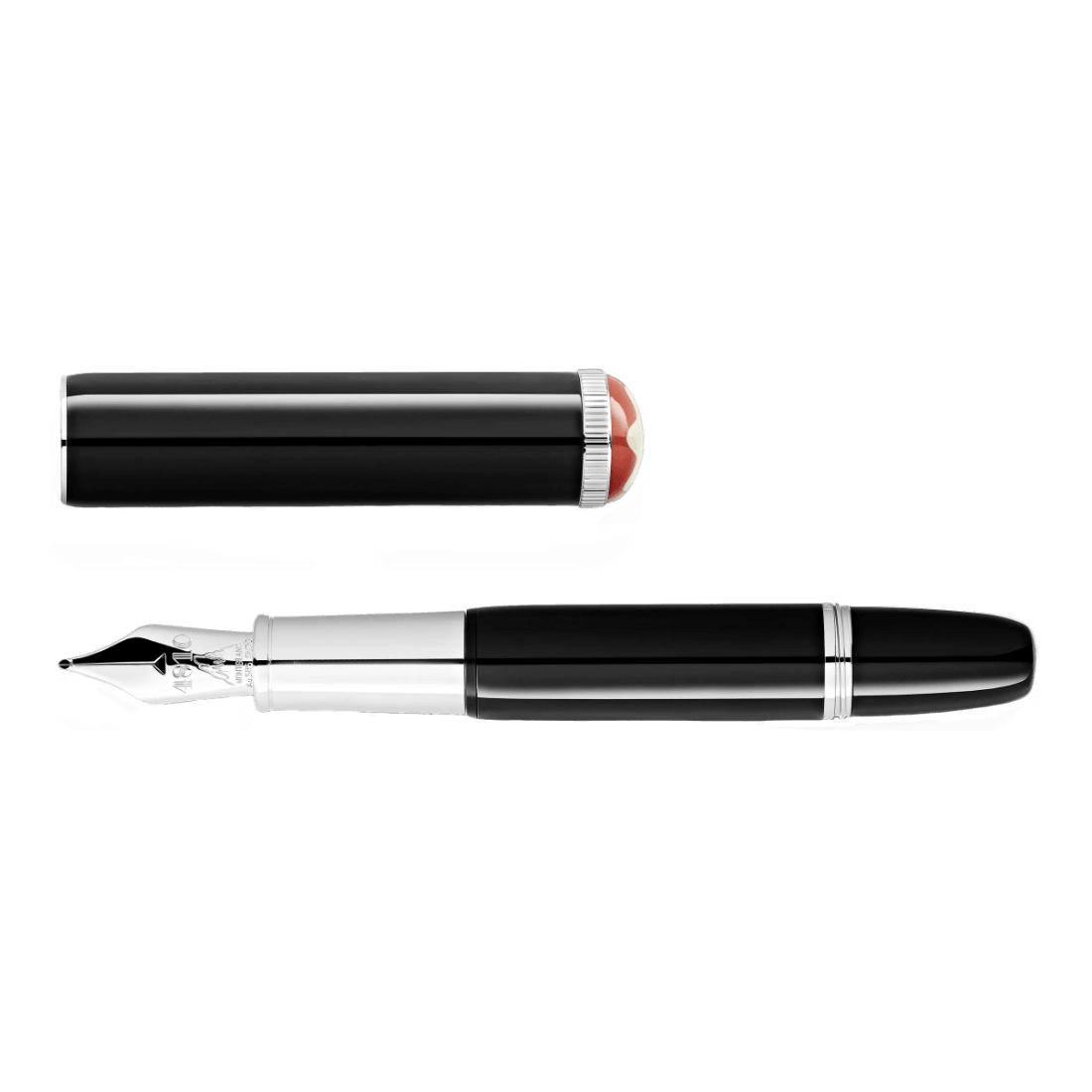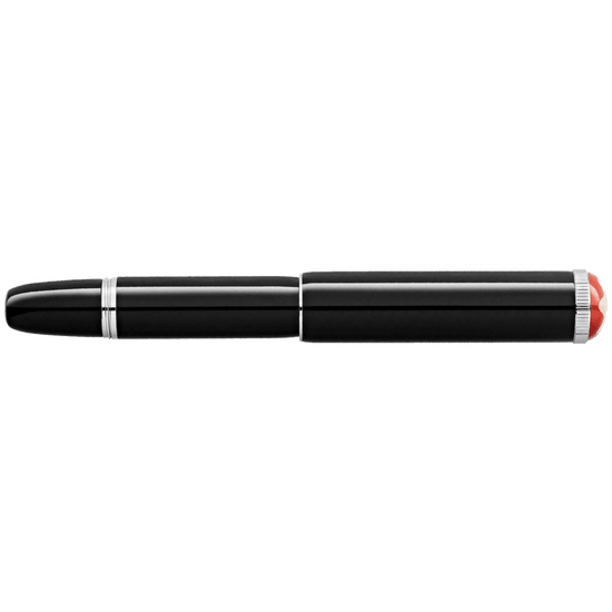 Montblanc Heritage Collection Rouge et Noir “Baby” celebra lo spirito pionieristico e la ricca tradizione della Maison. Ispirandosi alle penne “Baby” degli anni ’20, Montblanc reinterpreta in chiave moderna questo design rivoluzionario per l’epoca. Il nome è un riferimento scherzoso alle dimensioni ridotte di questo modello, rispetto agli altri strumenti da scrittura Montblanc. Creato in preziosa lacca nera con dettagli finitura platino, è coronato dall’emblema Montblanc in pregiata resina, circondato dall’iconica tonalità corallo della collezione Rouge et Noir. Il pennino in oro massiccio Au585 realizzato a mano presenta un disegno del Monte Bianco.