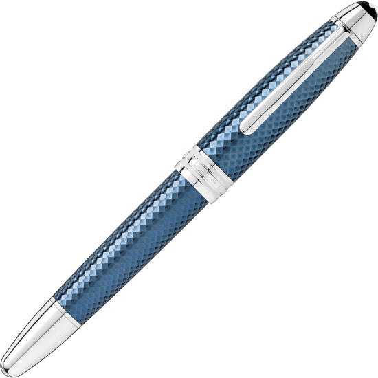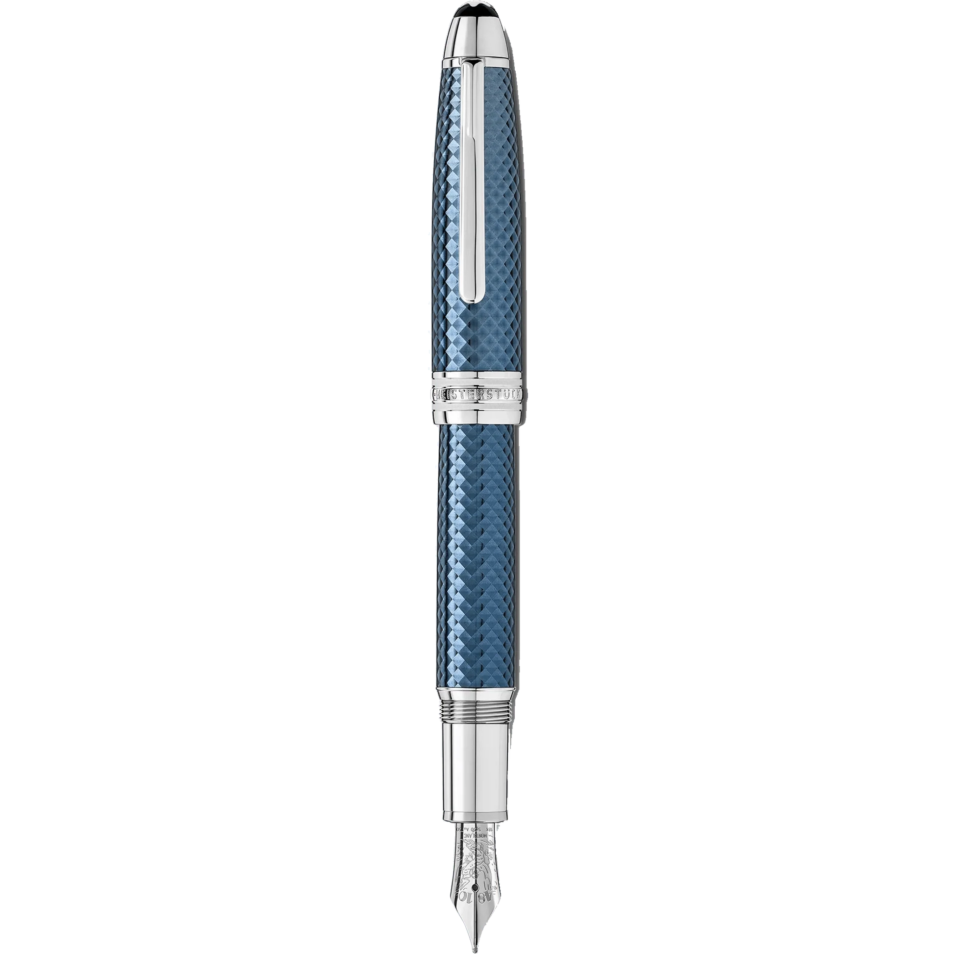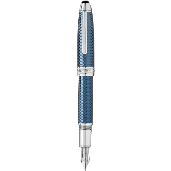 La stilografica Meisterstück Glacier Solitaire si ispira ai ghiacciai del Monte Bianco, simbolo della nostra dedizione alla qualità superiore e del nostro slancio verso l’esplorazione e lo spirito d’avventura. Completa questo strumento da scrittura il pennino in oro massiccio Au750 / 18K con finitura rodio, decorato da una riproduzione del ghiacciaio Mer de Glace, simile a un drago, che domina la cima del Monte Bianco. Il cappuccio e il corpo sono rivestiti da una lacca blu traslucida e presentano un’incisione dal motivo esclusivo che rievoca le rifrazioni geometriche dei cristalli di ghiaccio.