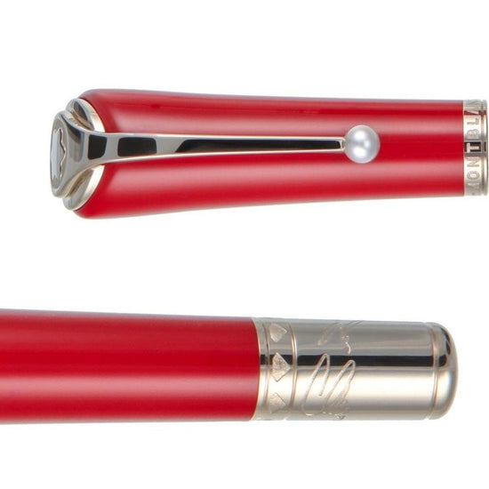 Marilyn Monroe (1926 – 1962) è divenuta un’icona della cultura americana celebrata in tutto il mondo. L’attrice, consacrata da Lee Strasberg, divenne uno dei più celebri sex symbol degli anni ‘50. Ancora oggi, le donne di tutto il mondo continuano a ispirarsi a lei, rendendola così un’icona culturale e di stile. Il design della linea Muses Marilyn Monroe trae ispirazione delle iconiche scarpe con tacco alto Ferragamo, che Marilyn indossava e che ne riflettevano la femminilità e sensualità. Il colore dello strumento da scrittura riprende quello del suo classico rossetto (Ruby Tuesday di Max Factor). La forma della clip con perla richiama i suoi gioielli e la sua passione per le perle.