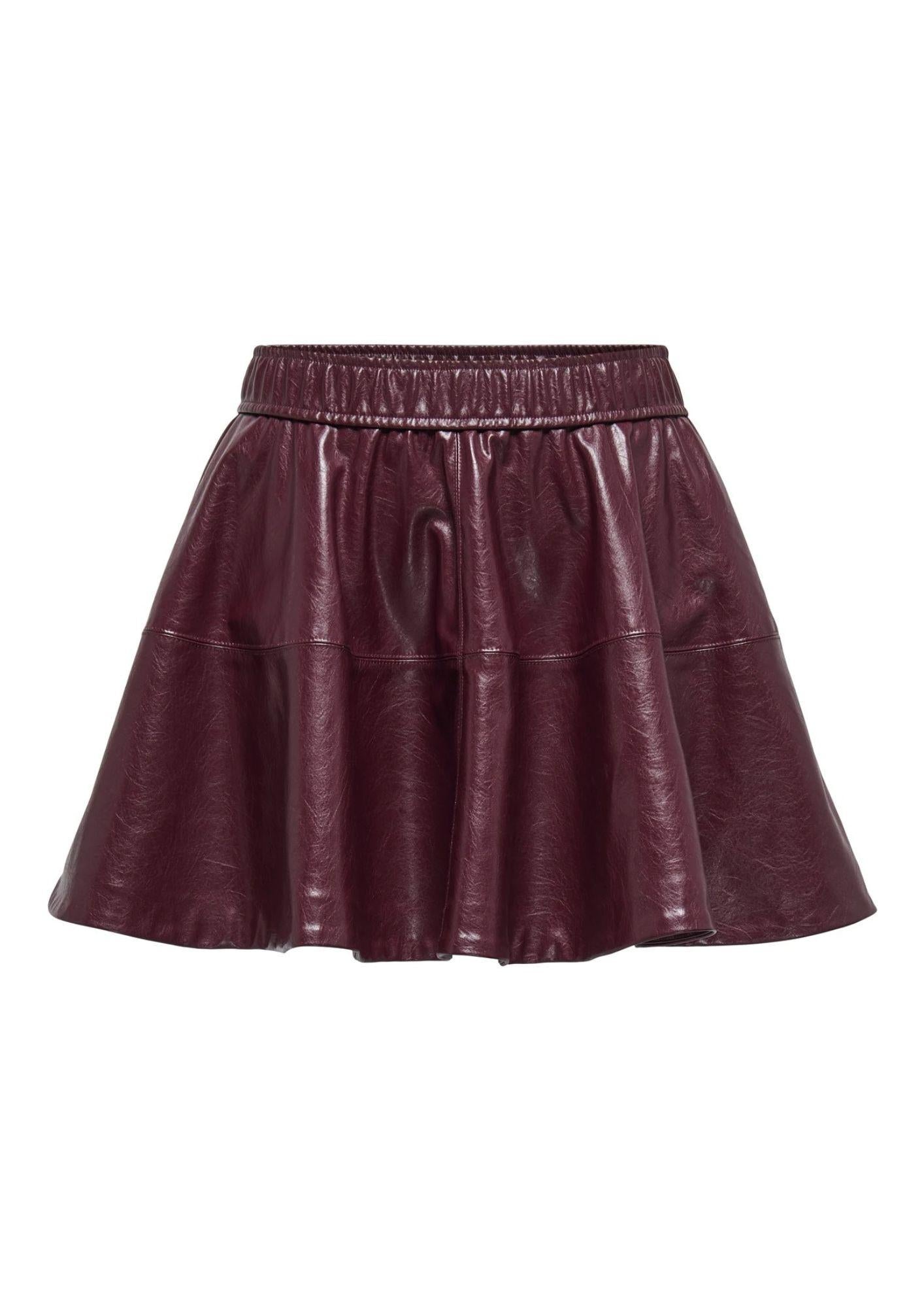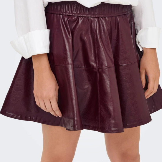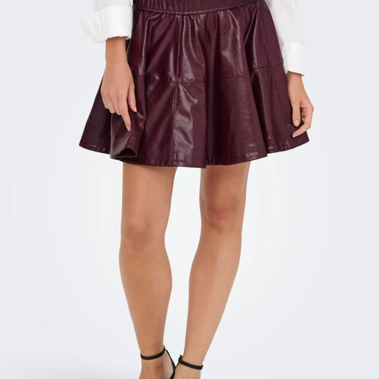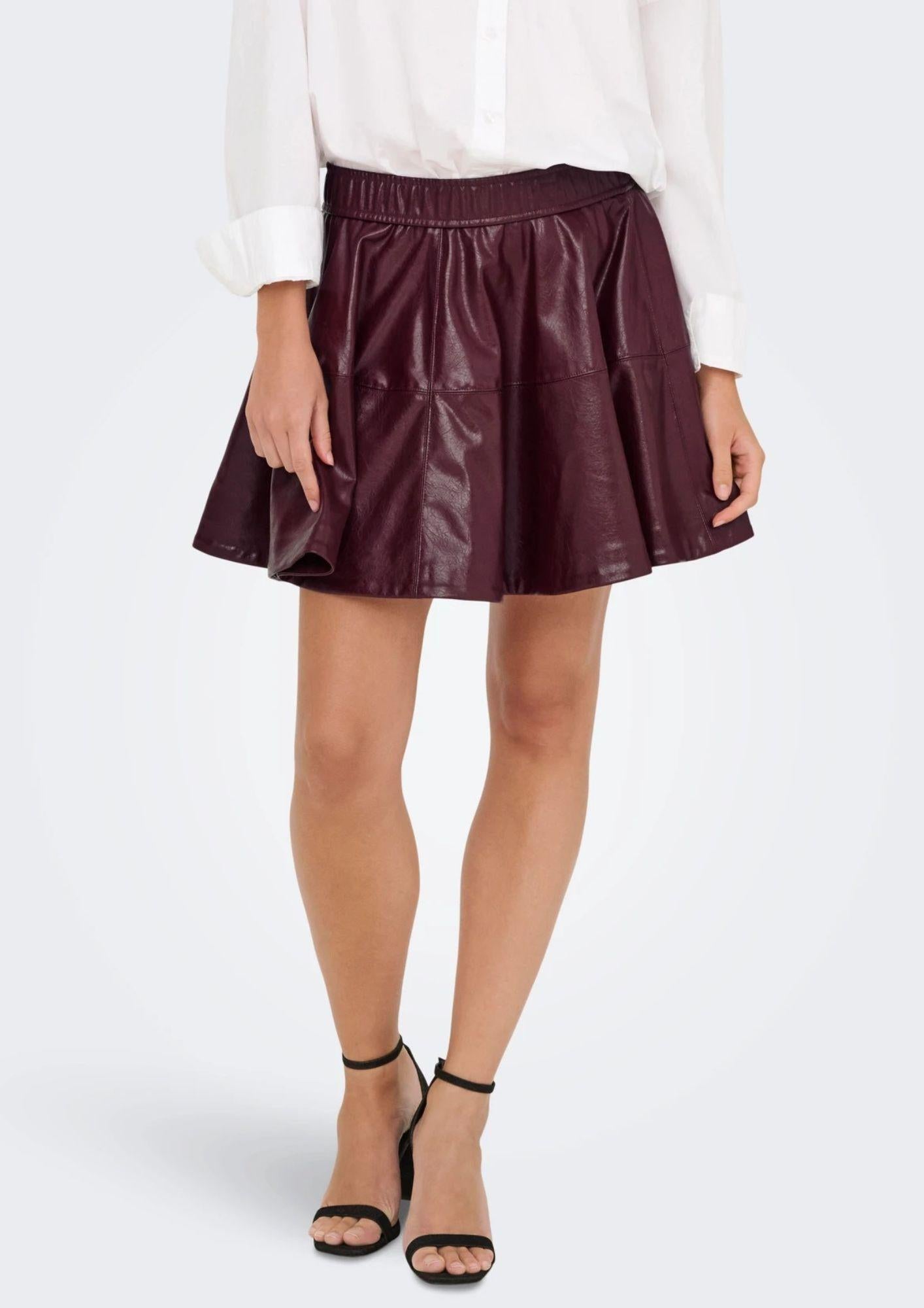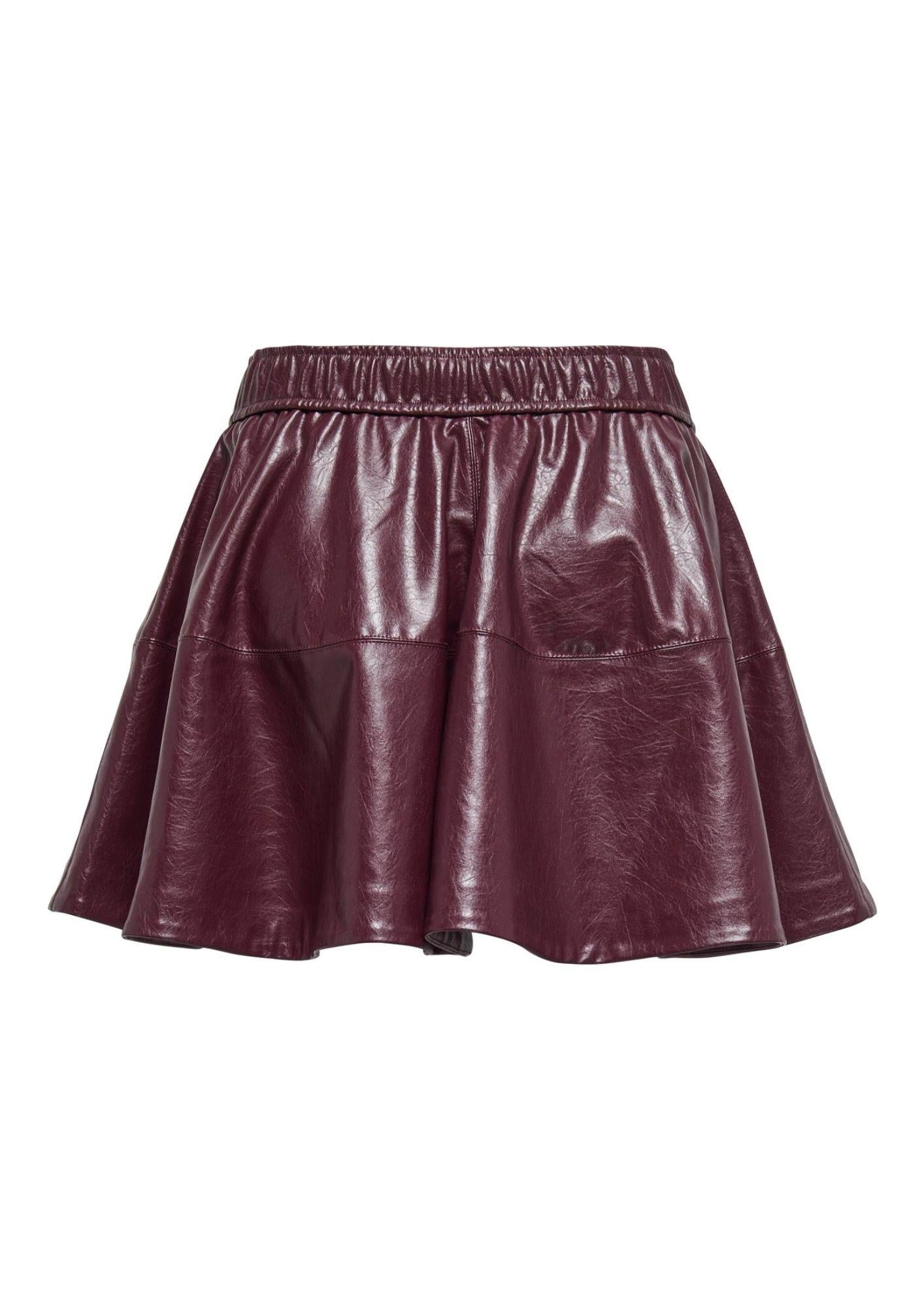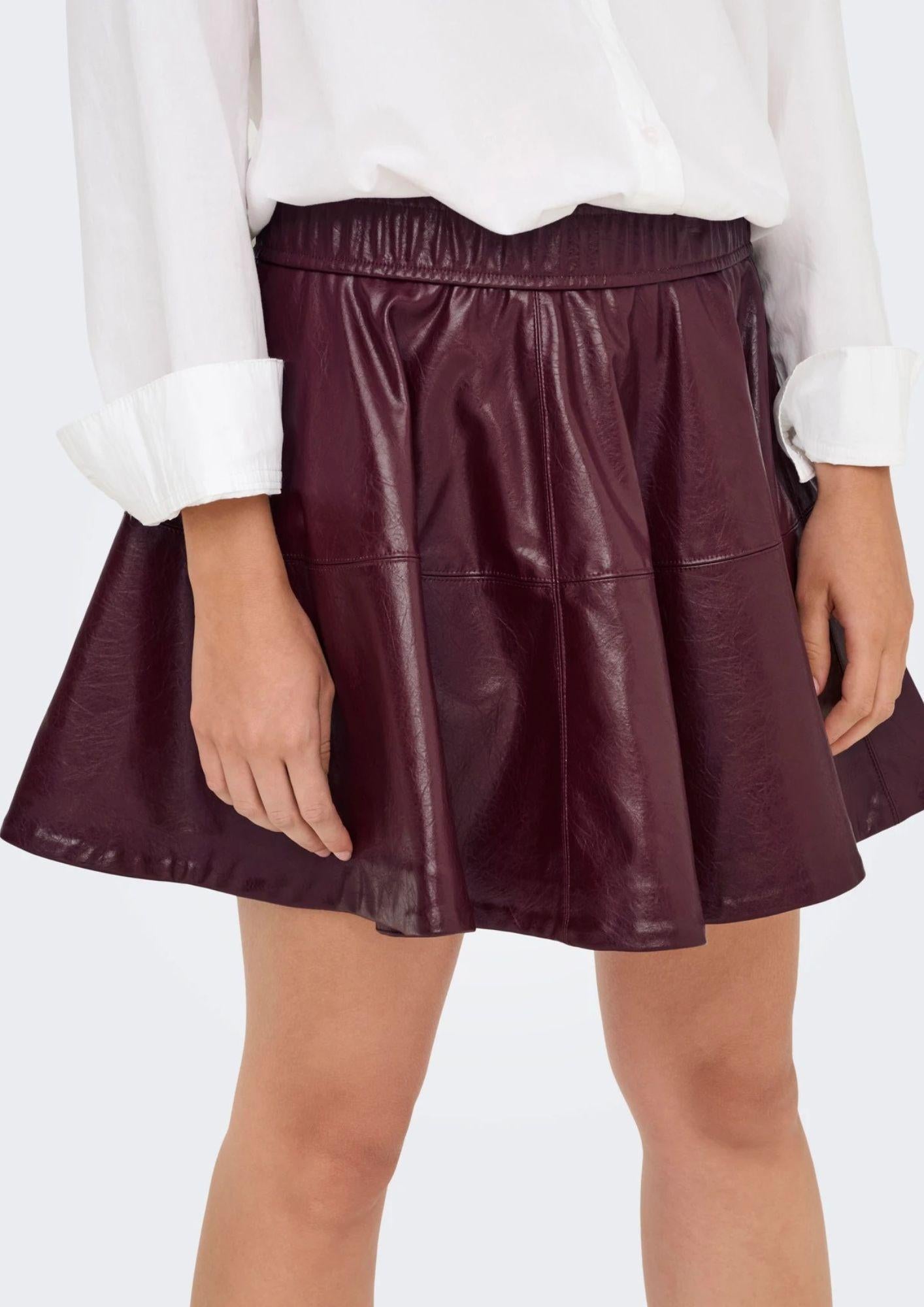 Il poliuretano è un materiale sintetico con una lucentezza sottile e una superficie liscia. Gonna corta a vita alta, 100% Poliestere - Rivestito di poliuretano