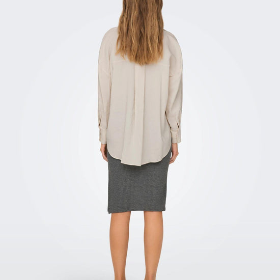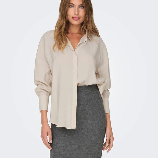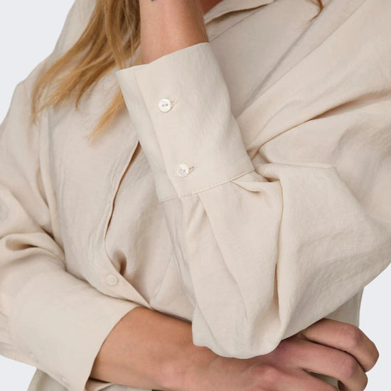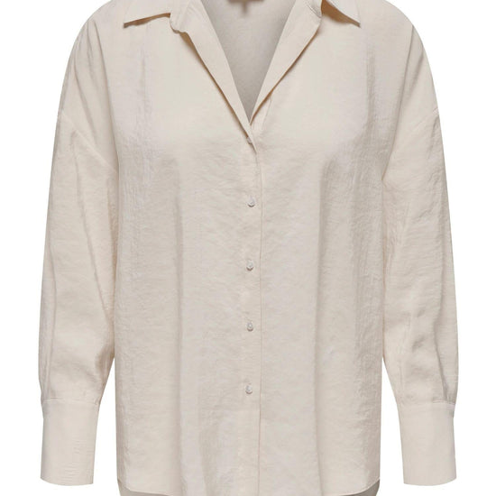 Add soft colors and refined details to your wardrobe with a feminine shirt that's easy to pair with classic jeans or a tailored skirt. Product Type: Shirt. Collar: Shirt Collar. Sleeve: Long Sleeves. Sleeves: Drop Shoulders. Cuffs: Button Cuffs. Closure: Button Closure. Details: Longer Back. Fit: Oversize Fit. Fabric Composition: 84% Modal 16% Polyester