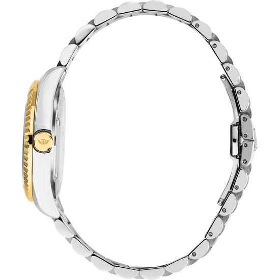 Bracciale bicolore acciaio e oro: Elegante contrasto con chiusura a farfalla per comfort e sicurezza.