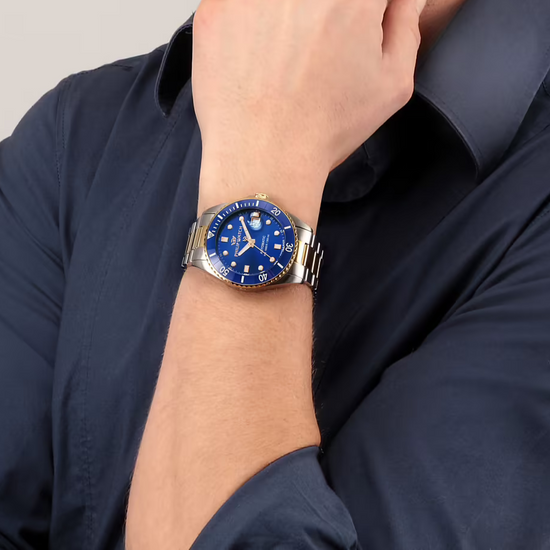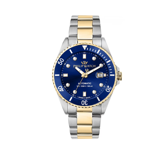 Il Philip Watch Caribe Diving R8223216010 è l’orologio perfetto per chi ama lo stile raffinato senza rinunciare alla funzionalità sportiva. Con una cassa in acciaio ipoallergenico 316L da 42 mm e una finitura satinata in tonalità gold, questo segnatempo unisce lusso e resistenza. Il bracciale in metallo bicolore argento-oro dona un tocco distintivo, mentre il vetro zaffiro assicura massima protezione da graffi e urti.
