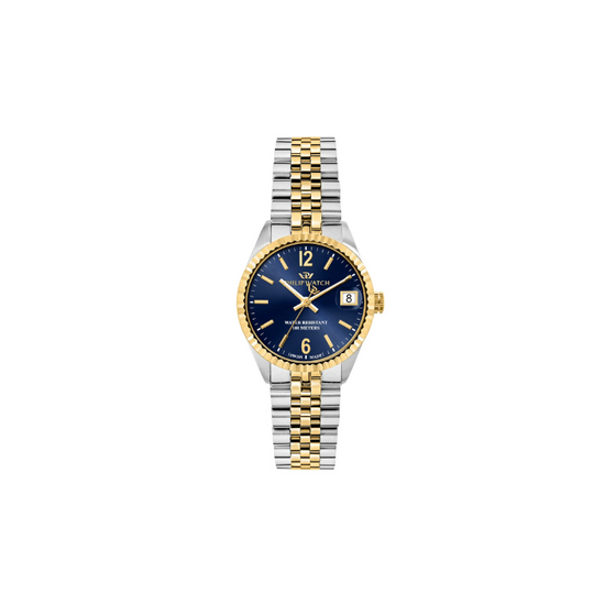 Quadrante: Blu con indici a bastone e datario a ore 3 con lente d’ingrandimento, vetro zaffiro antigraffio.