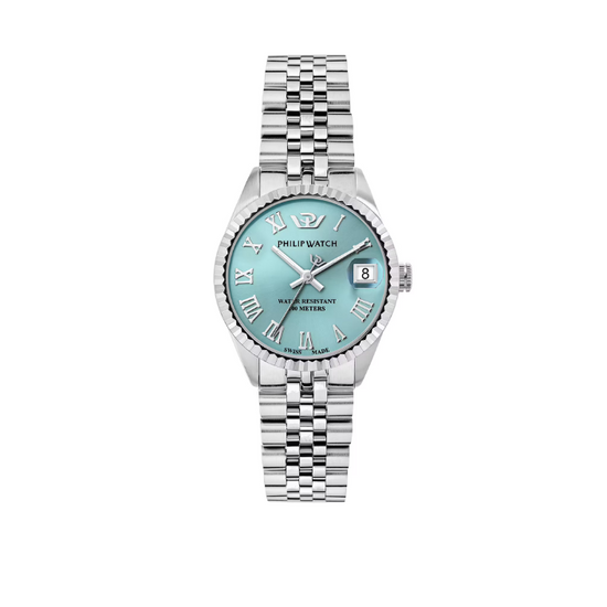 Il Philip Watch Caribe è l'orologio ideale per la donna che cerca un perfetto equilibrio tra eleganza e funzionalità. Con la sua cassa in acciaio lucido e satinato da 31 mm, questo orologio esprime raffinatezza e solidità. Il vetro zaffiro, con trattamento antiriflesso, assicura resistenza ai graffi e massima visibilità, mentre il cinturino in acciaio silver, con fibbia diver e blocco di sicurezza, offre un comfort senza pari. Dotato di movimento Swiss Made, è perfetto per ogni occasione.