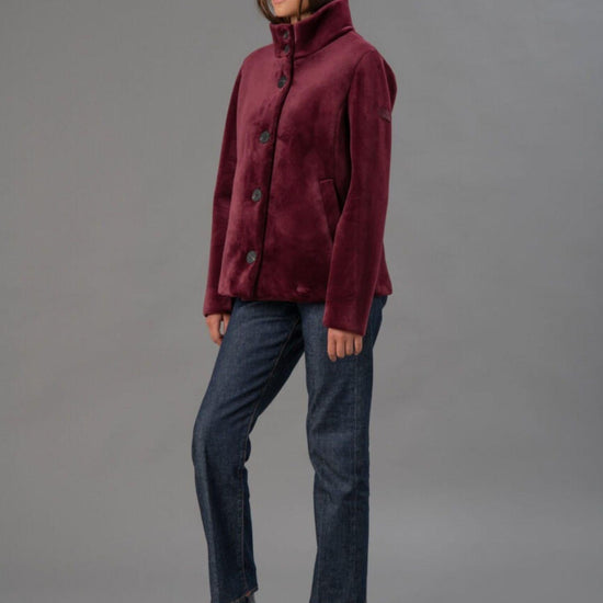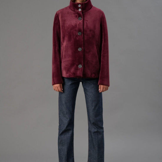 Giubbino corto realizzato in velluto liscio stretch accoppiato a jersey nero, pensato per offrire un perfetto equilibrio tra eleganza e comfort. Il collo alto e i bottoni piatti logati cuciti a filo donano un tocco sofisticato, mentre le tasche a filetto aggiungono praticità e stile. La vestibilità regular valorizza la silhouette senza rinunciare alla comodità, rendendolo ideale per completare look moderni e raffinati. Tessuto: 95% poliestere, 5% elastan.