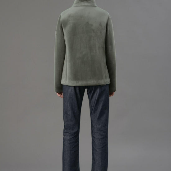 Giubbino corto realizzato in velluto liscio stretch accoppiato a jersey nero, pensato per offrire un perfetto equilibrio tra eleganza e comfort. Il collo alto e i bottoni piatti logati cuciti a filo donano un tocco sofisticato, mentre le tasche a filetto aggiungono praticità e stile. La vestibilità regular valorizza la silhouette senza rinunciare alla comodità, rendendolo ideale per completare look moderni e raffinati. Tessuto: 95% poliestere, 5% elastan.