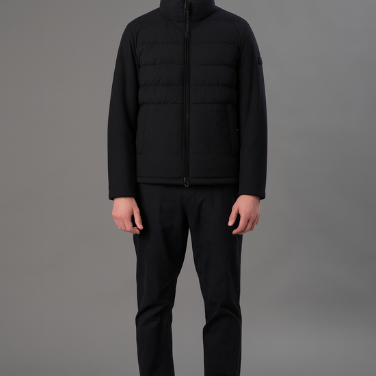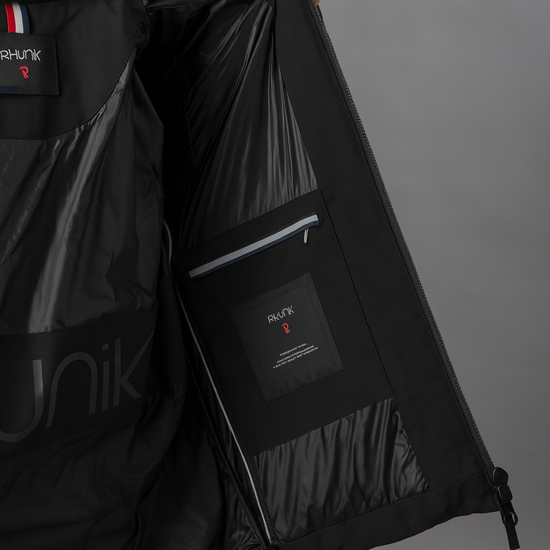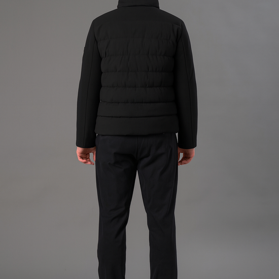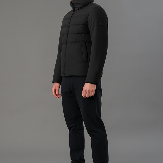 This smooth outerwear reinterprets the classic parka with a minimalist and contemporary twist. Crafted from finely ribbed and bonded black velvet, it combines elegance and functionality. Featuring side welt pockets, an exposed front button placket, and adjustable cuffs for a comfortable and versatile fit. Its straight silhouette and regular fit are ideal for a sophisticated urban look. Fabric: 100% nylon.