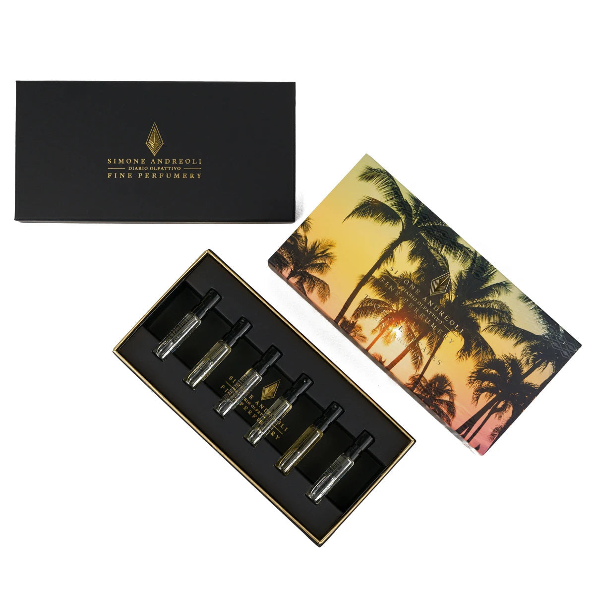 An exotic selection for the summer season of 6 themed fragrances in 1.7ml format:
