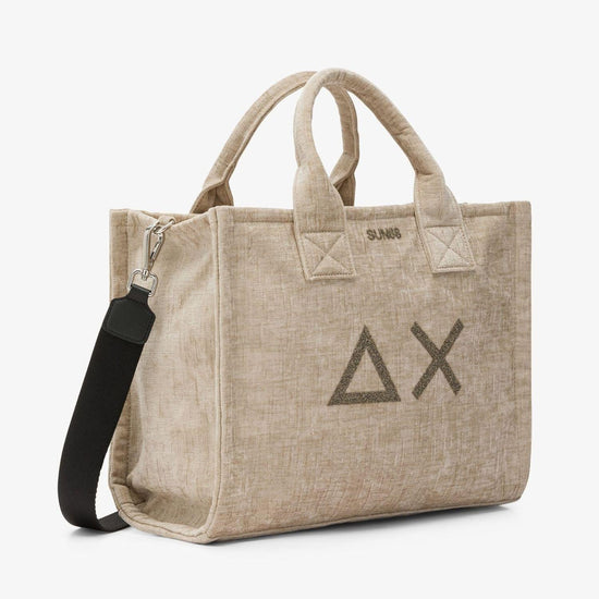 Cali is the SUN68 shopping bag that combines versatility and style. Equipped with a removable shoulder strap for maximum comfort, it comes in various sizes and sophisticated materials to suit a variety of styles and occasions. Cali midi shopping bag in velvet