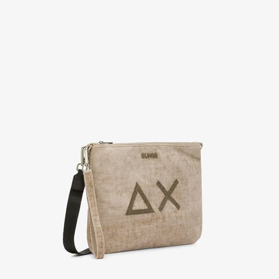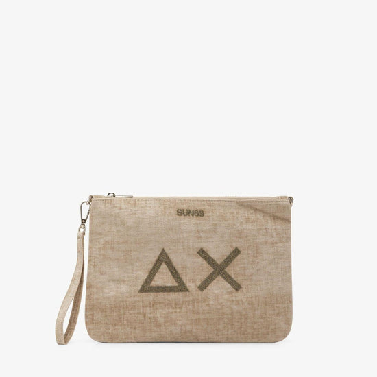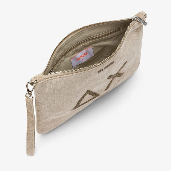 The SUN68 accessories collection explores new forms of femininity with practical yet sophisticated designs. Meticulously crafted and finished with luxurious textures, they're a bold choice that elevates everyday style. Velvet clutch, removable wrist strap, removable grosgrain shoulder strap, and internal zip pocket.