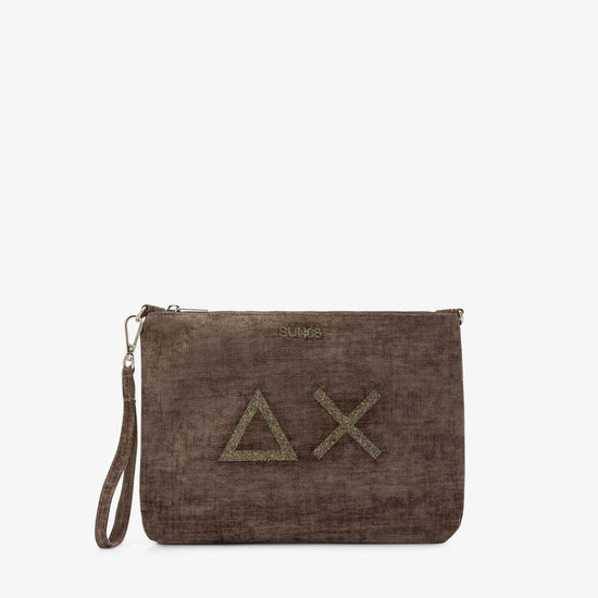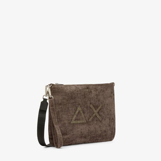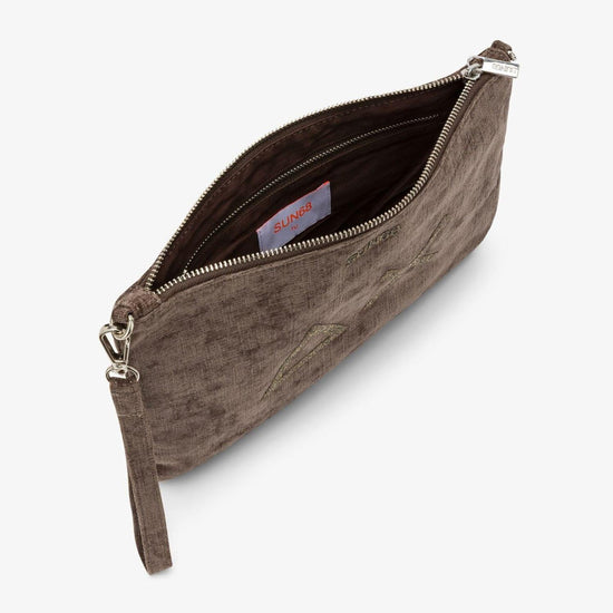 The SUN68 accessories collection explores new forms of femininity with practical yet sophisticated designs. Meticulously crafted and finished with luxurious textures, they're a bold choice that elevates everyday style. Velvet clutch, removable wrist strap, removable grosgrain shoulder strap, and internal zip pocket.